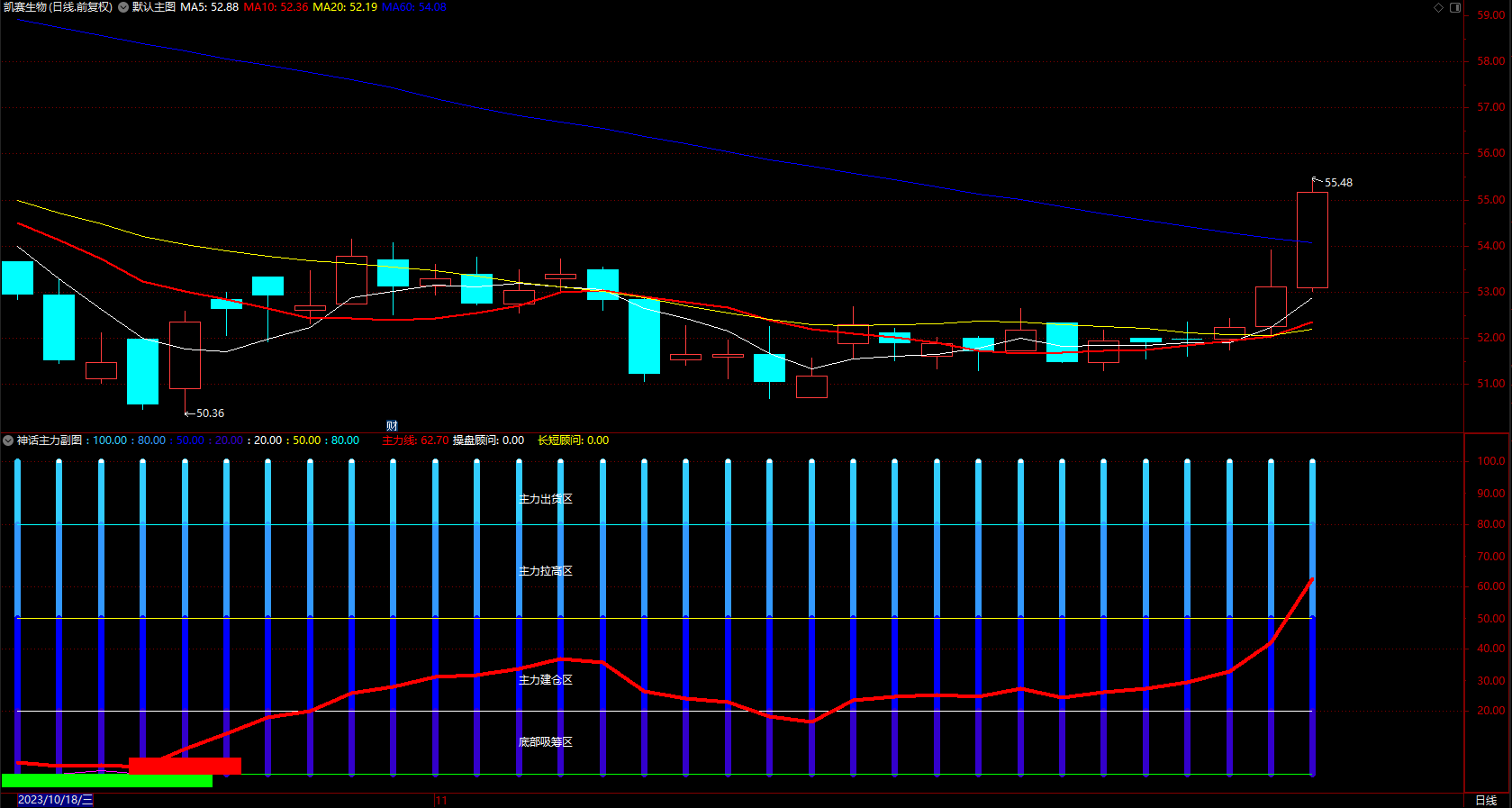 (神话主力现行副图 通达信底部吸筹区 指标公式 无未来 源码 )