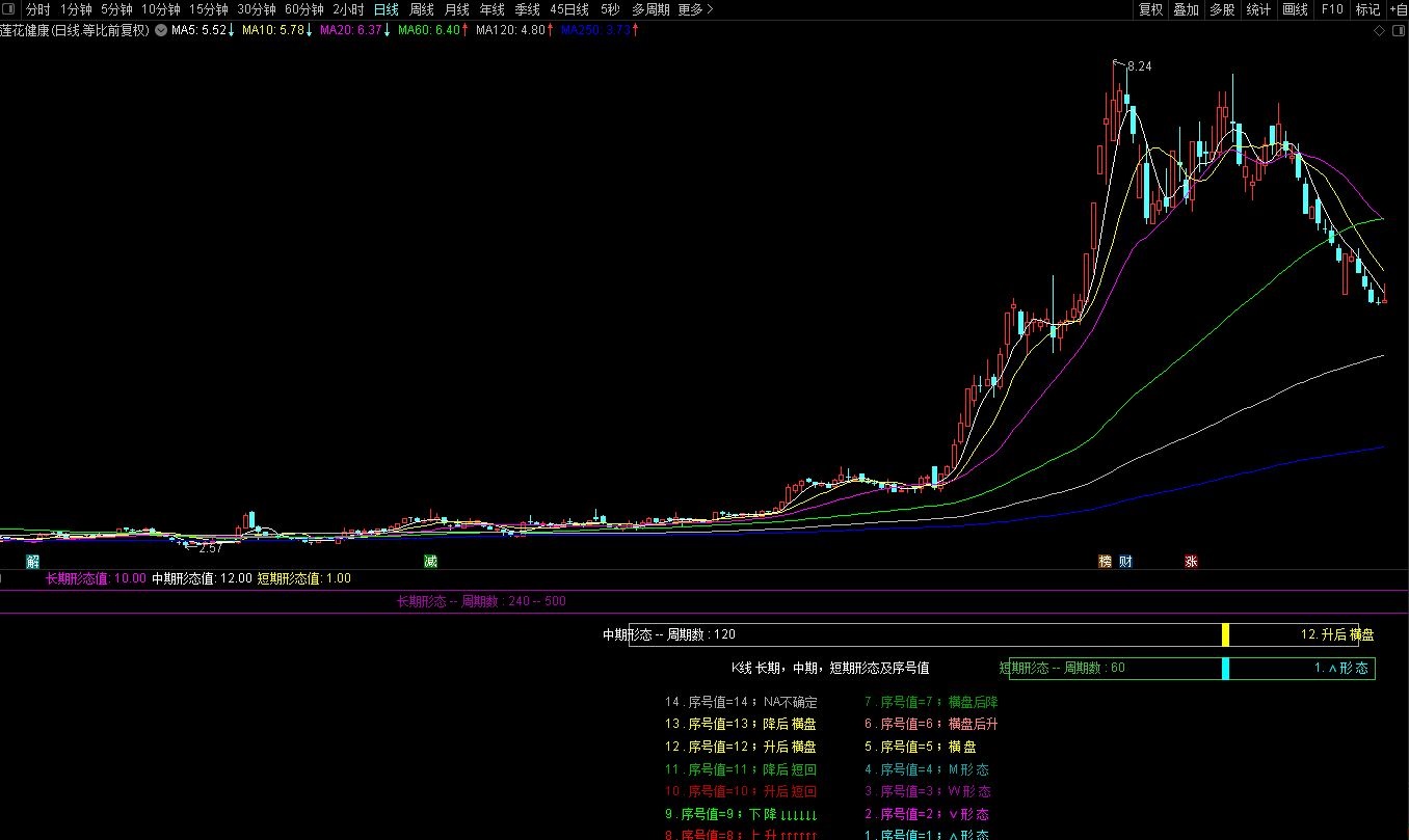 【K线形态方向】通达信K线长中短形态副图指标,源码分享