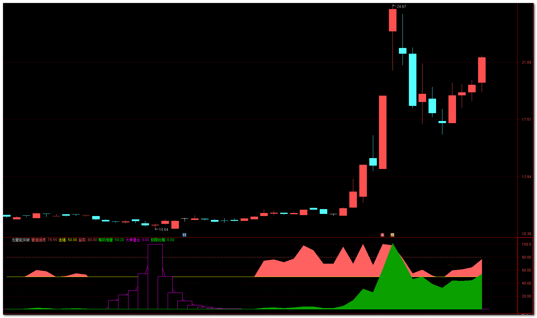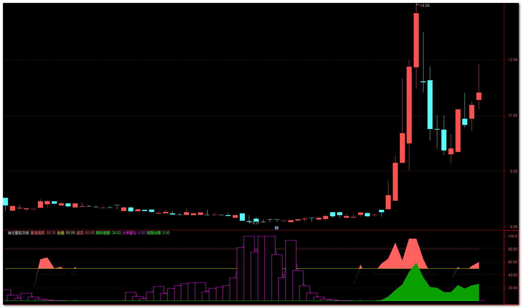 【神龙量能突破】通达信神龙量能突破副图指标,把握主力建仓量能强度,源码分享