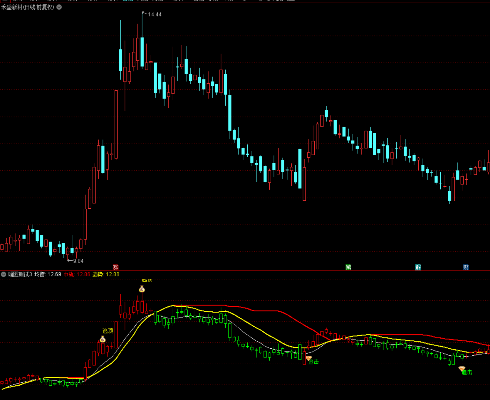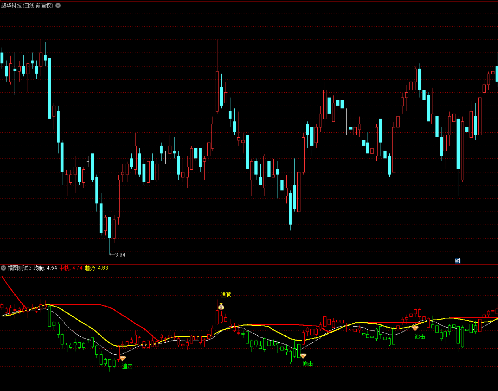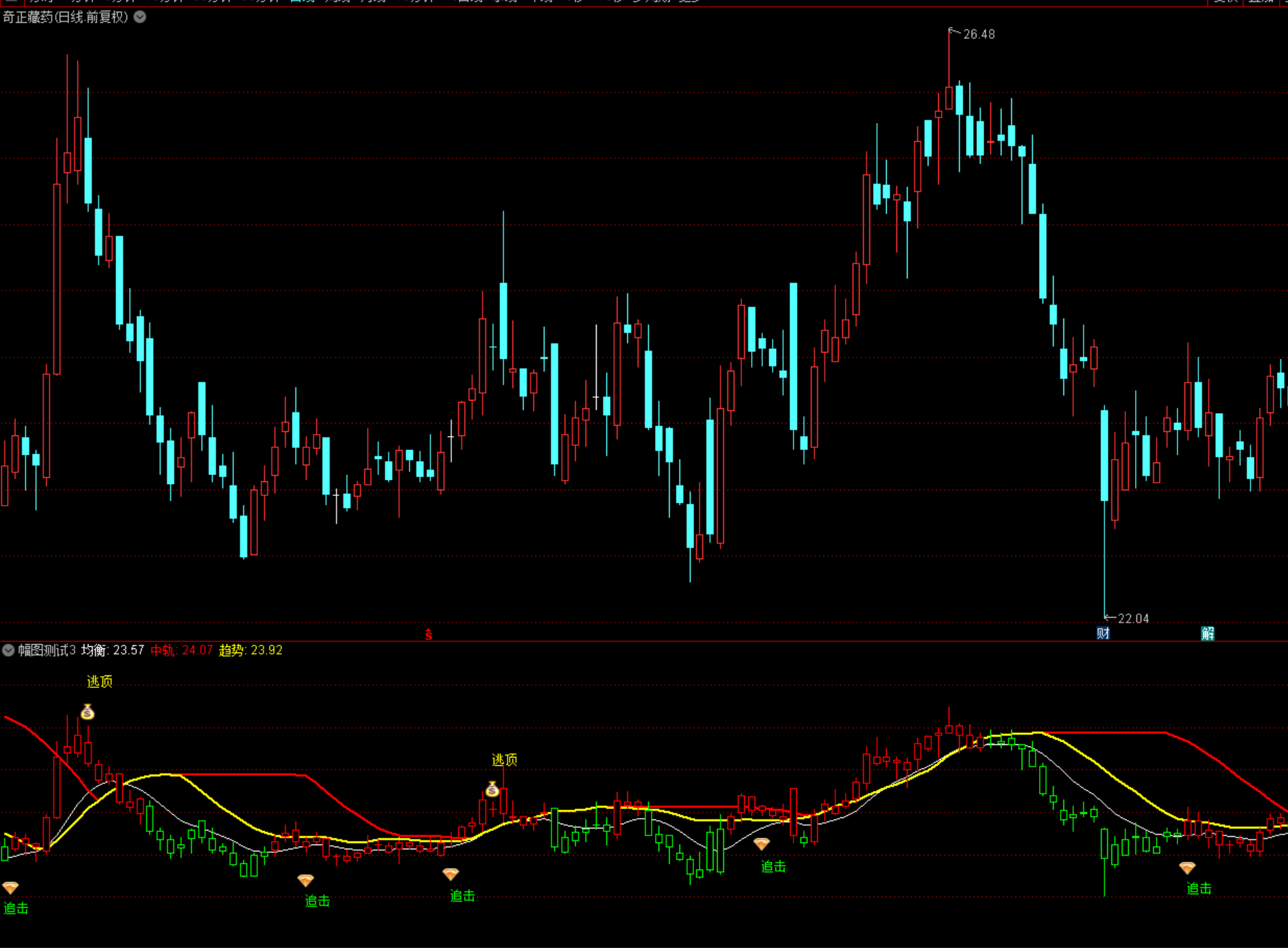 (通达信多空趋势中轨买卖线追击逃顶操盘提示幅图指标公式源码下载)
