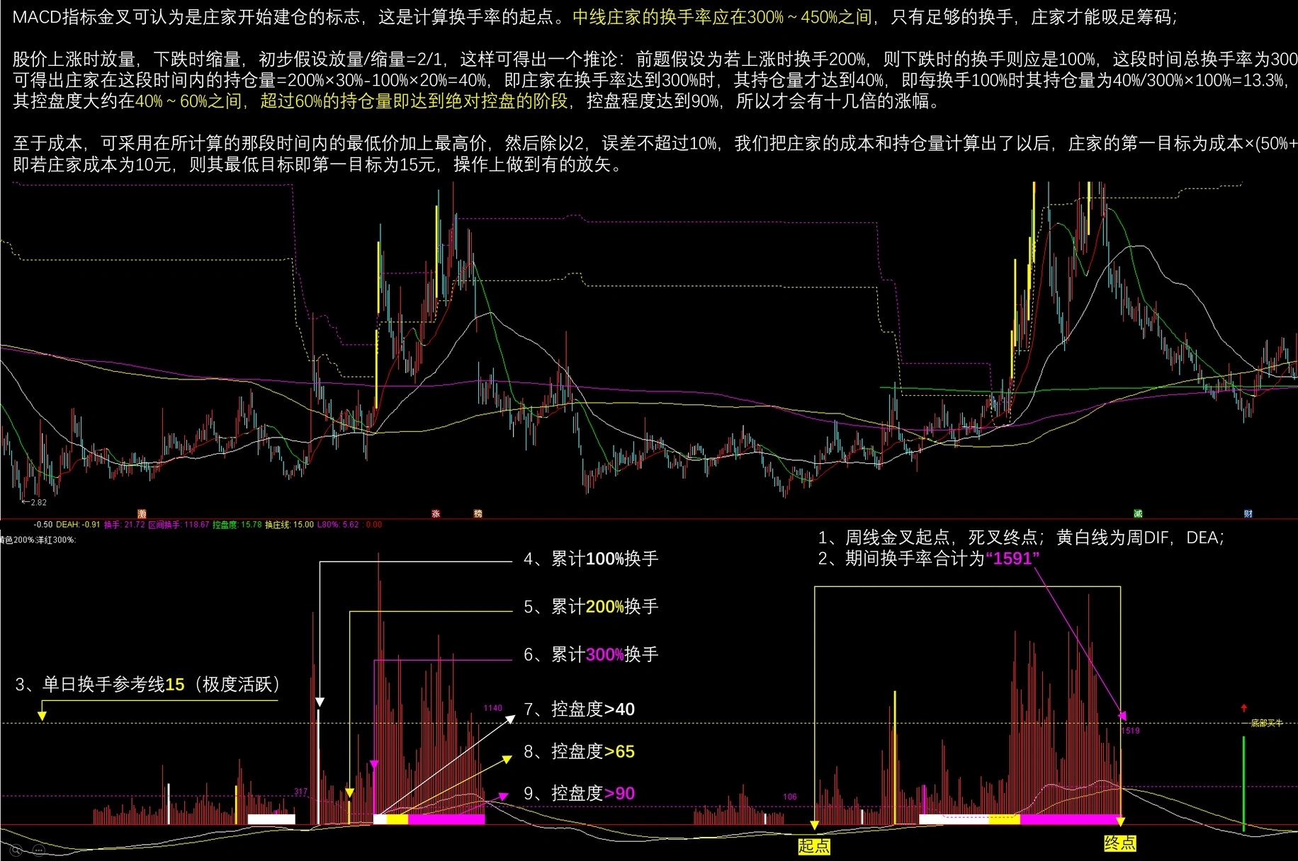 (【换手寻牛熊】通达信换手寻牛熊副图指标,换手率判庄家断牛熊,买票不踩坑!源码分享)