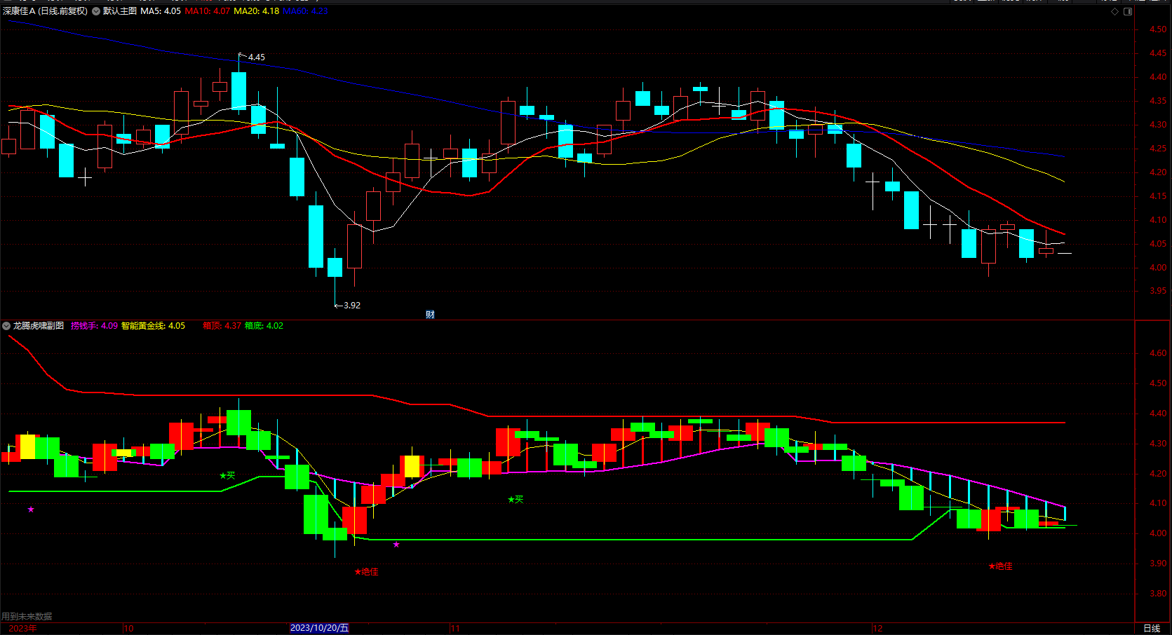 DRAWTEXT(A>B ,箱底,'--短期好'),COLOR00FFFF;