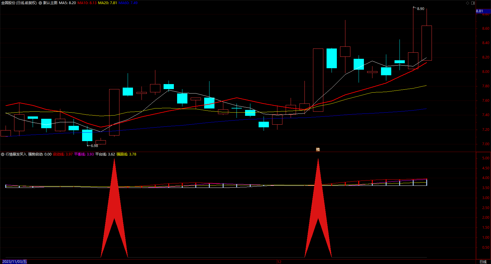 通达信〖AI量化分时〗主副图分时指标,捕捉股票在分时图上的强势启动信号,源码