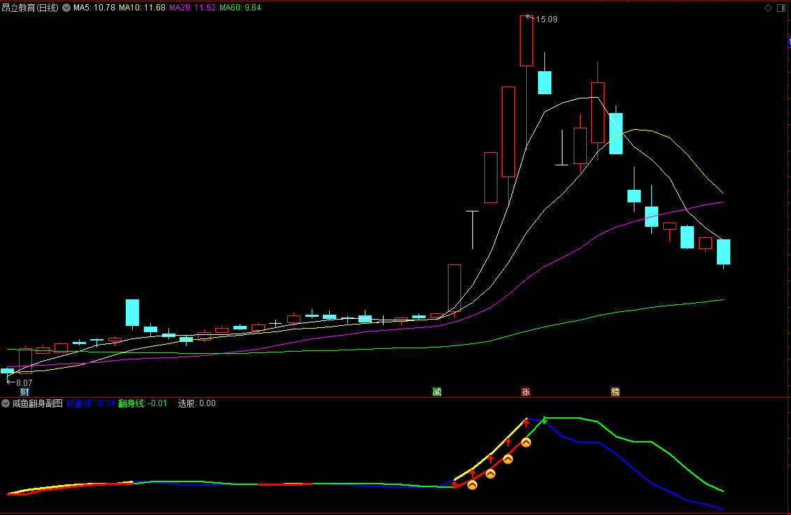 咸鱼翻身”副图指标,该指标适用于短线波段操作,在使用之前一定要先下载好收盘数据,不然指标显示会出现不完整的情况!