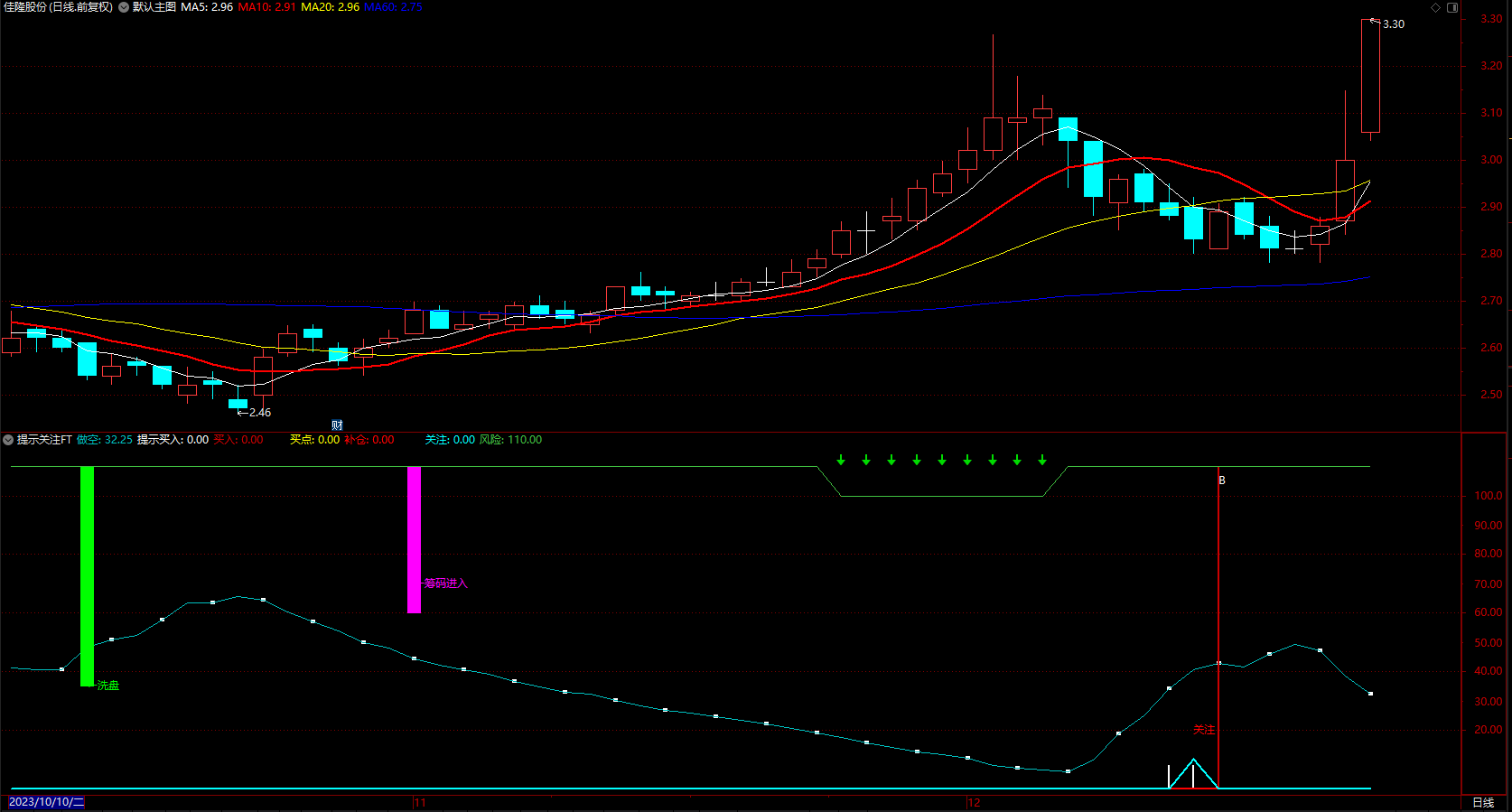 关注:IF(快=0 AND 慢=0,10,0),COLORCYAN,LINETHICK2;