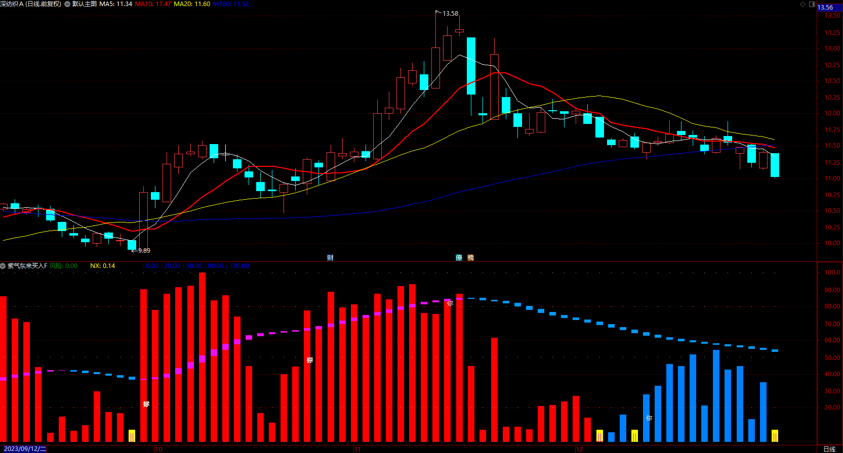 买入点提示 通达信红柱加紫波段持股量柱指标公式 副图 源码