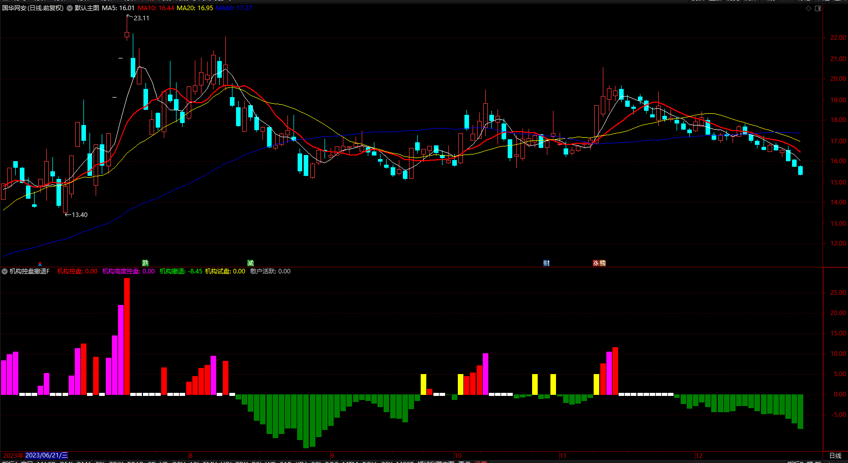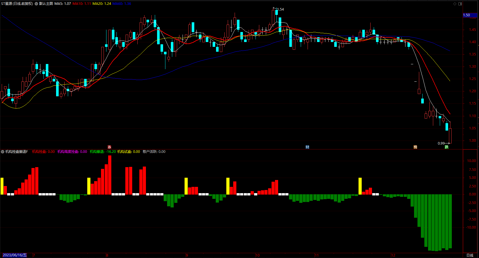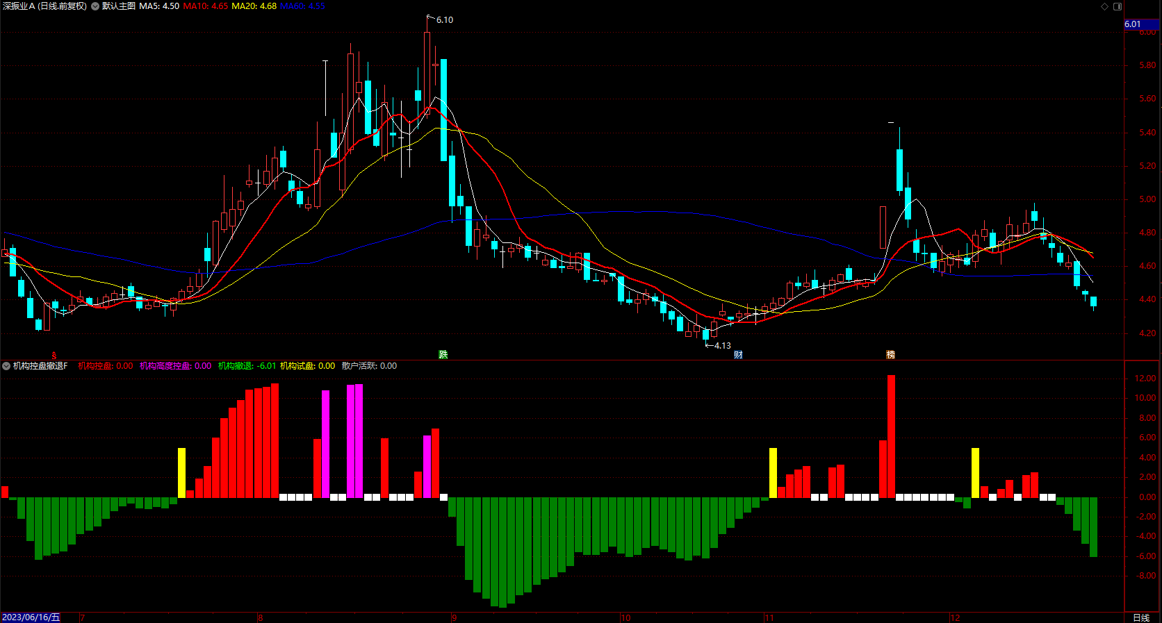 机构试盘:IF(A10,5,0),LINETHICK1,COLOR00FFFF,NODRAW;