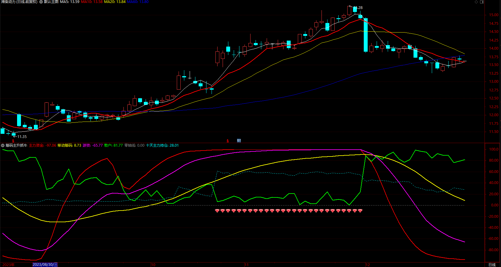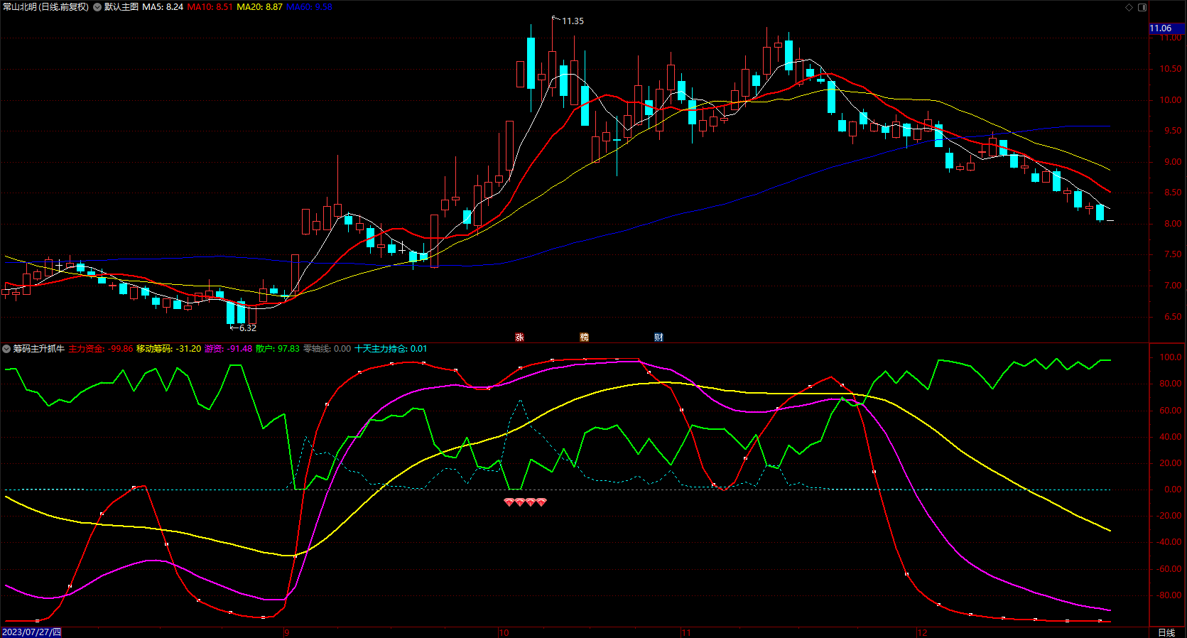 筹码主升抓牛股短板 通达信主力资金趋势线 指标公式 副图 源码