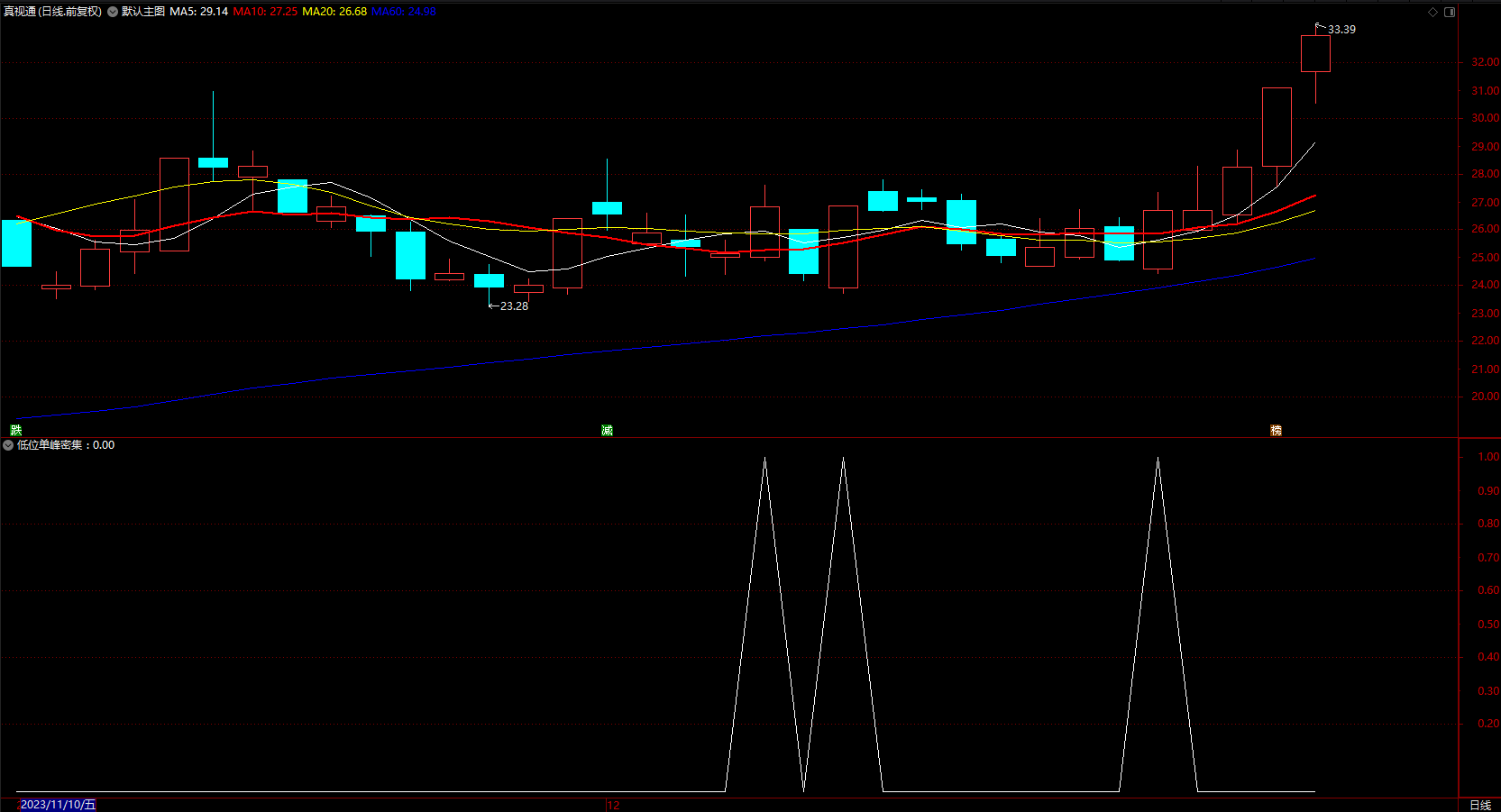 (低位单峰密集突破选股 通达信跟庄买进指标公式 副图 源码 )