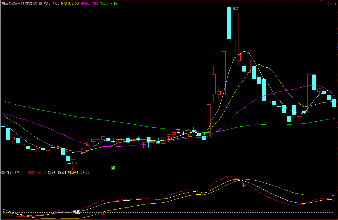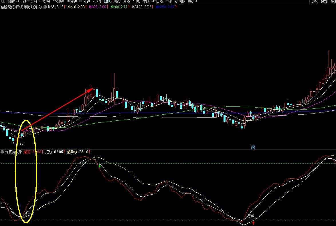 3、当公式出现“寻底”信号或红色箭头上扬,预示后市上涨概率颇高,实为买入良机。