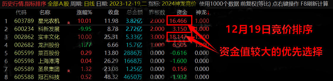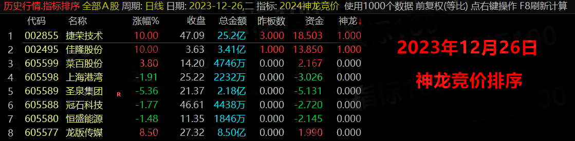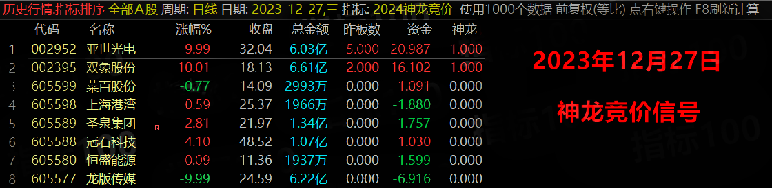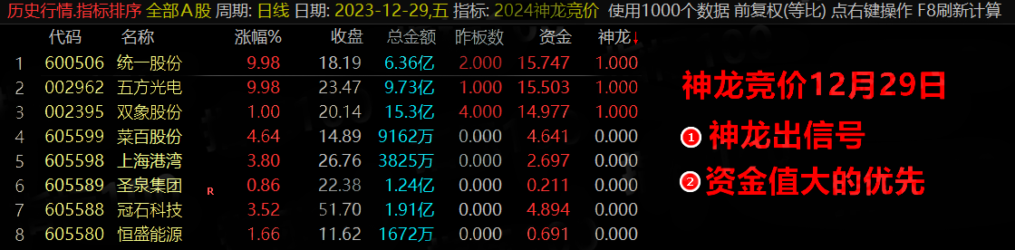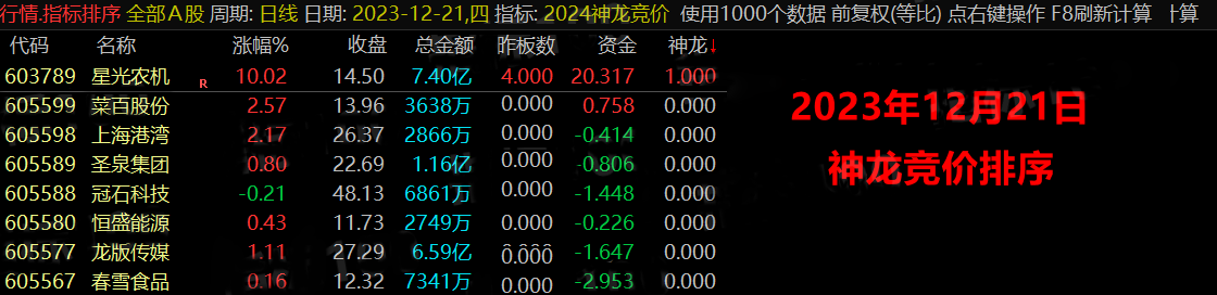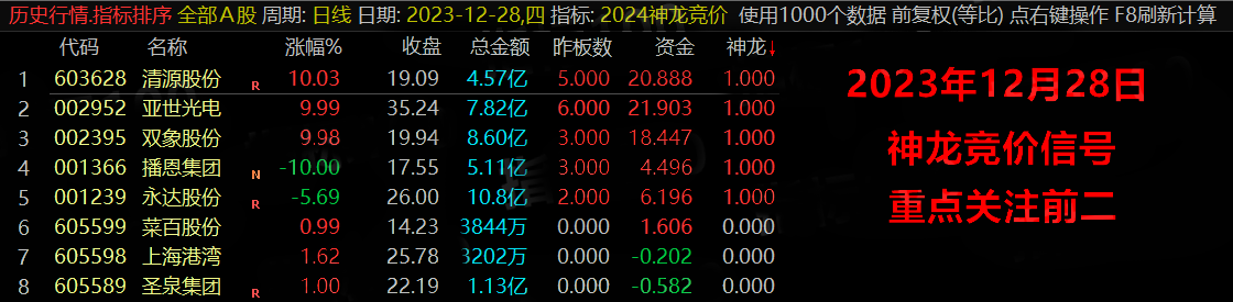 (通达信《2024神龙竞价》集合竞价抓涨停,9:25分一键排序指标,全天不变、源码开放)