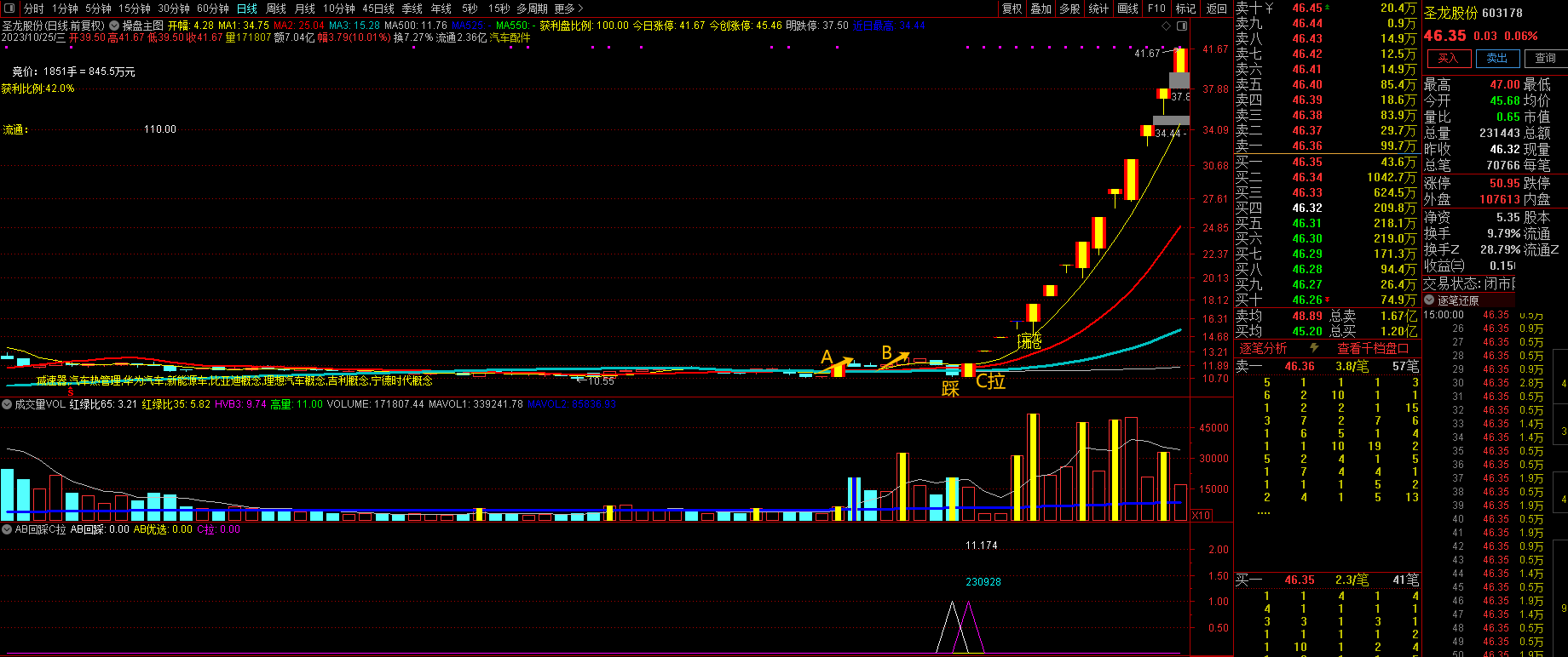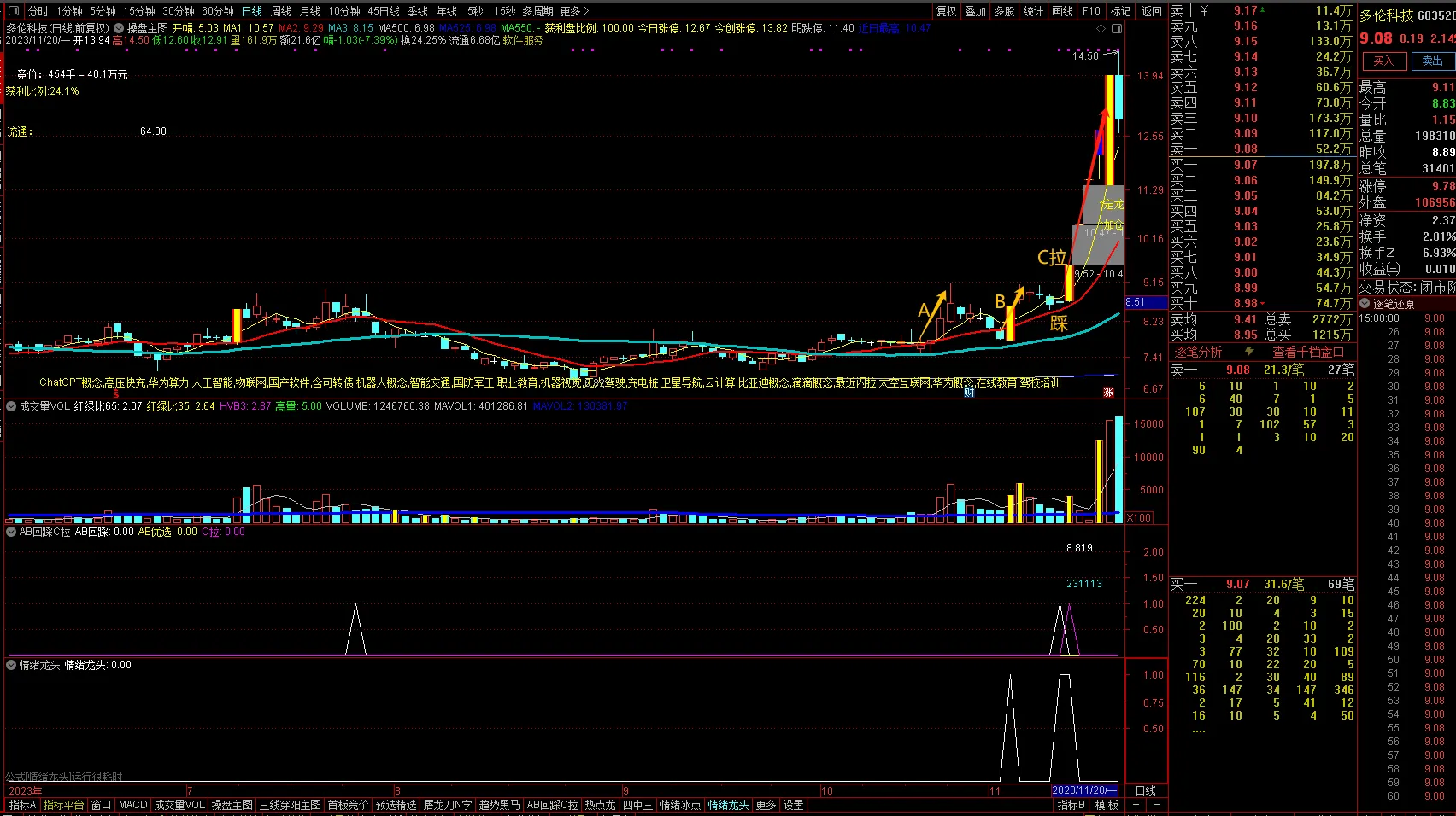 (【AB回踩C拉】在平台附近两波放量K线回踩后反拉.(关于未来函数的说明))