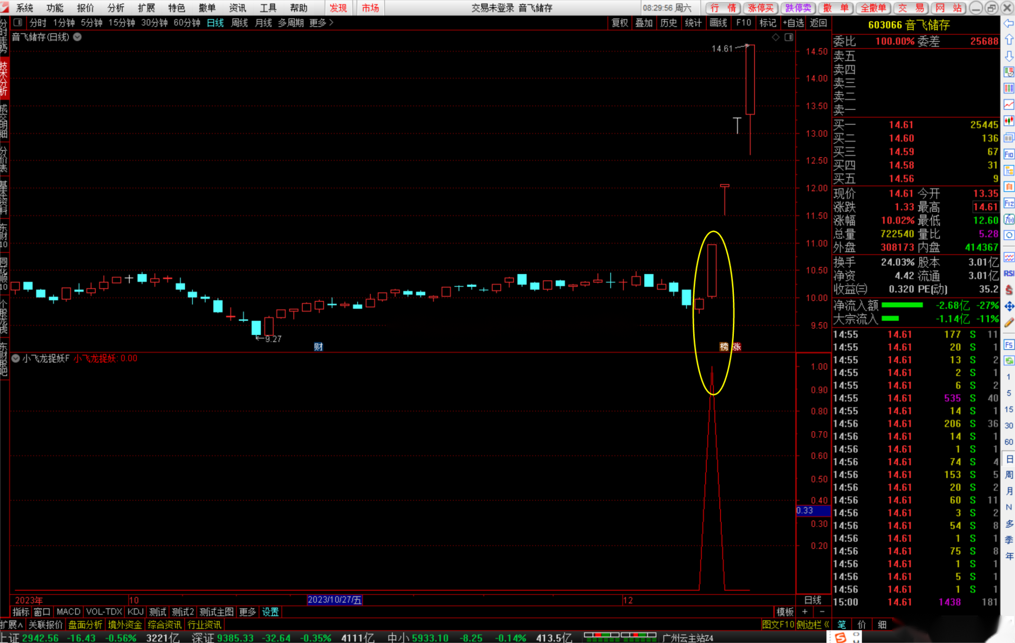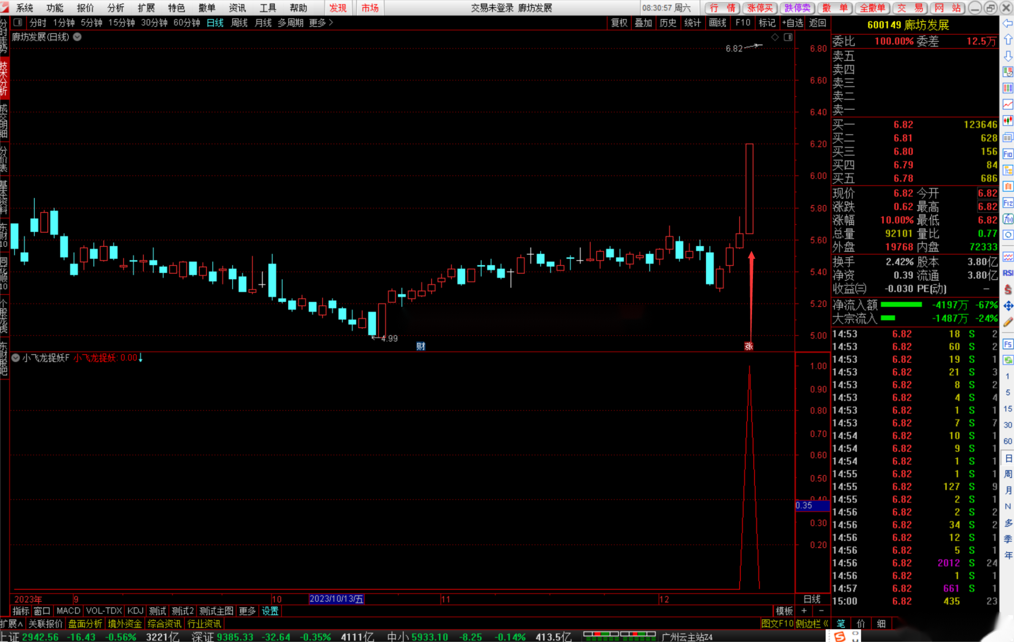 提示:DYNAINFO(4)>0,这个并非未来函数,作用是过滤当天没开盘的。不喜欢的可以改为:1,这样就可以选出当天不开盘的票。