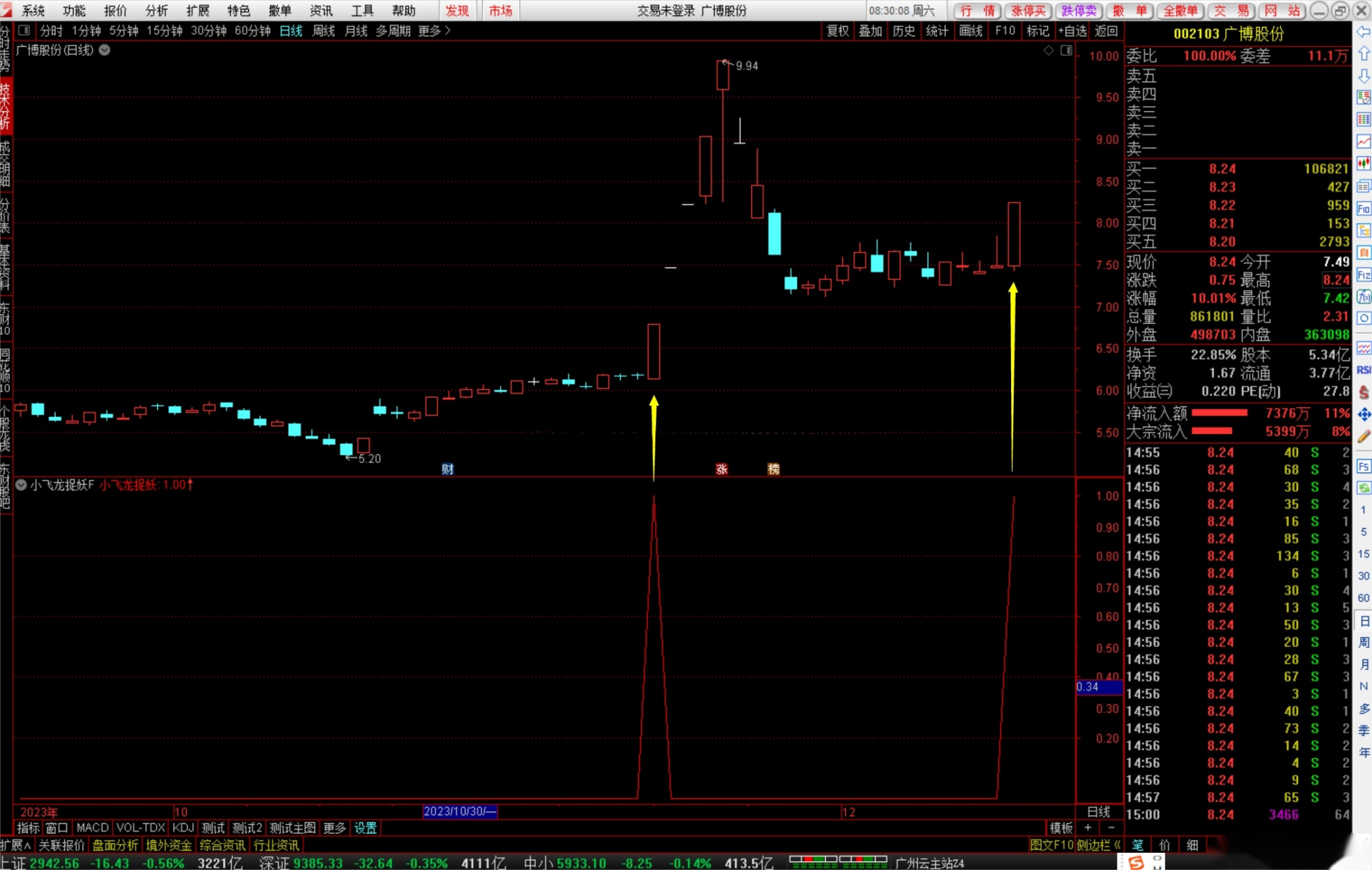 精华版:分时主力吸筹:增加了买入点提示,效果不错。手机电脑都可用。