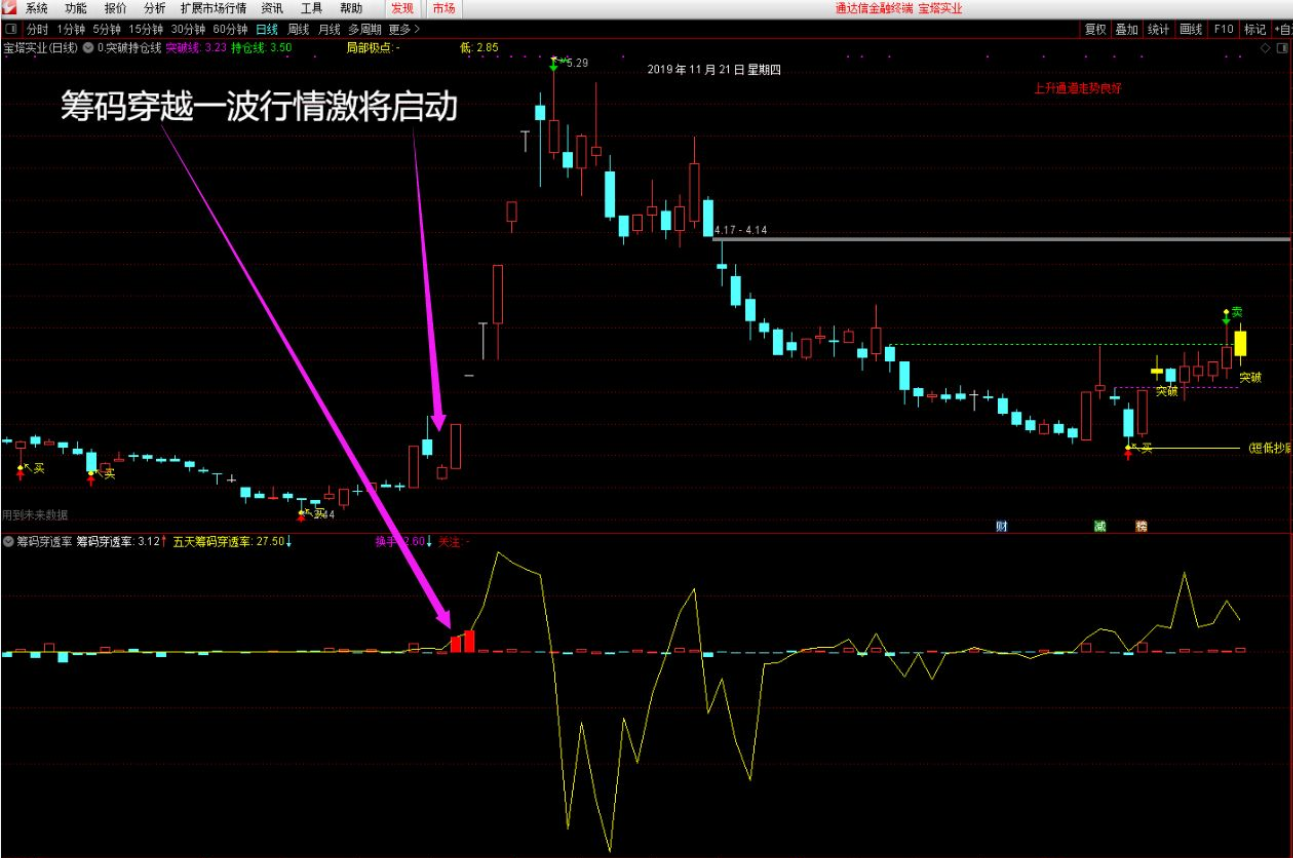 (筹码穿透率 通达信量柱看盘副图指标公式 副图 源码 )