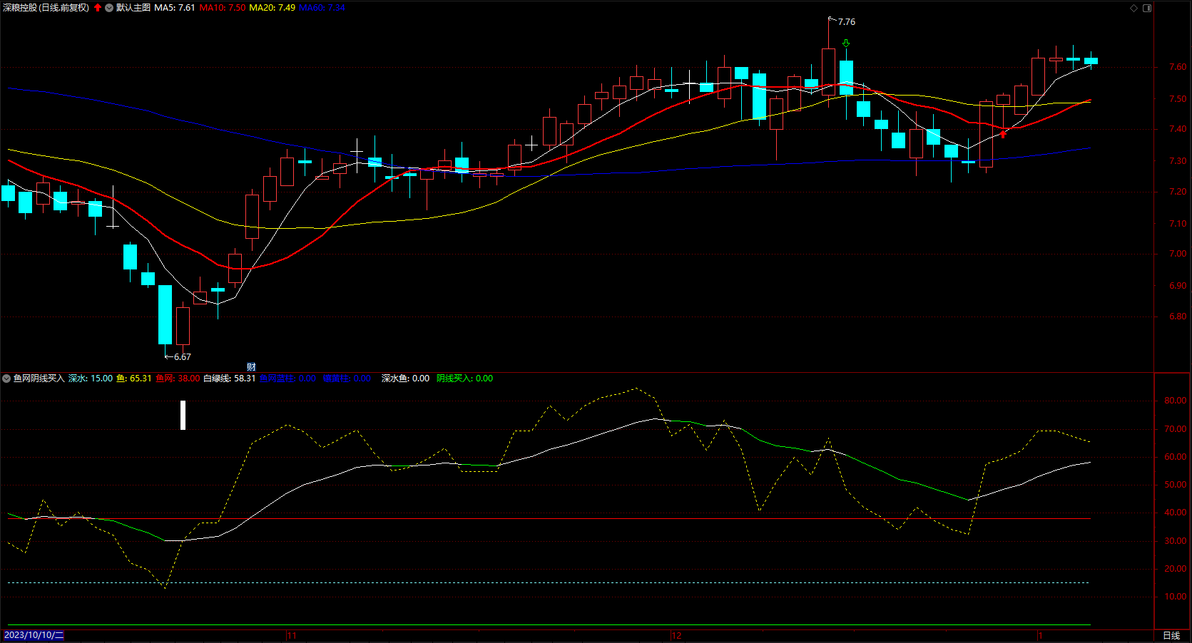 白绿线:SMA(鱼,7,1),COLORWHITE;