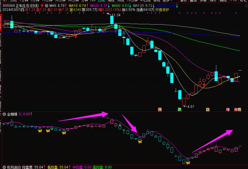蓝蝴蝶波段底,非常的适合波段操作,用法也非常的简单,出现蓝蝴蝶就是买入信号。
