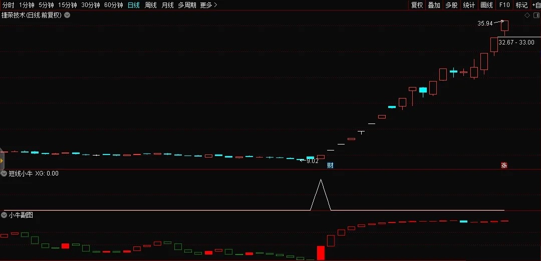 (通达信【短线小牛】通达信短线小牛副图指标,信号出在个股起涨的底部!)