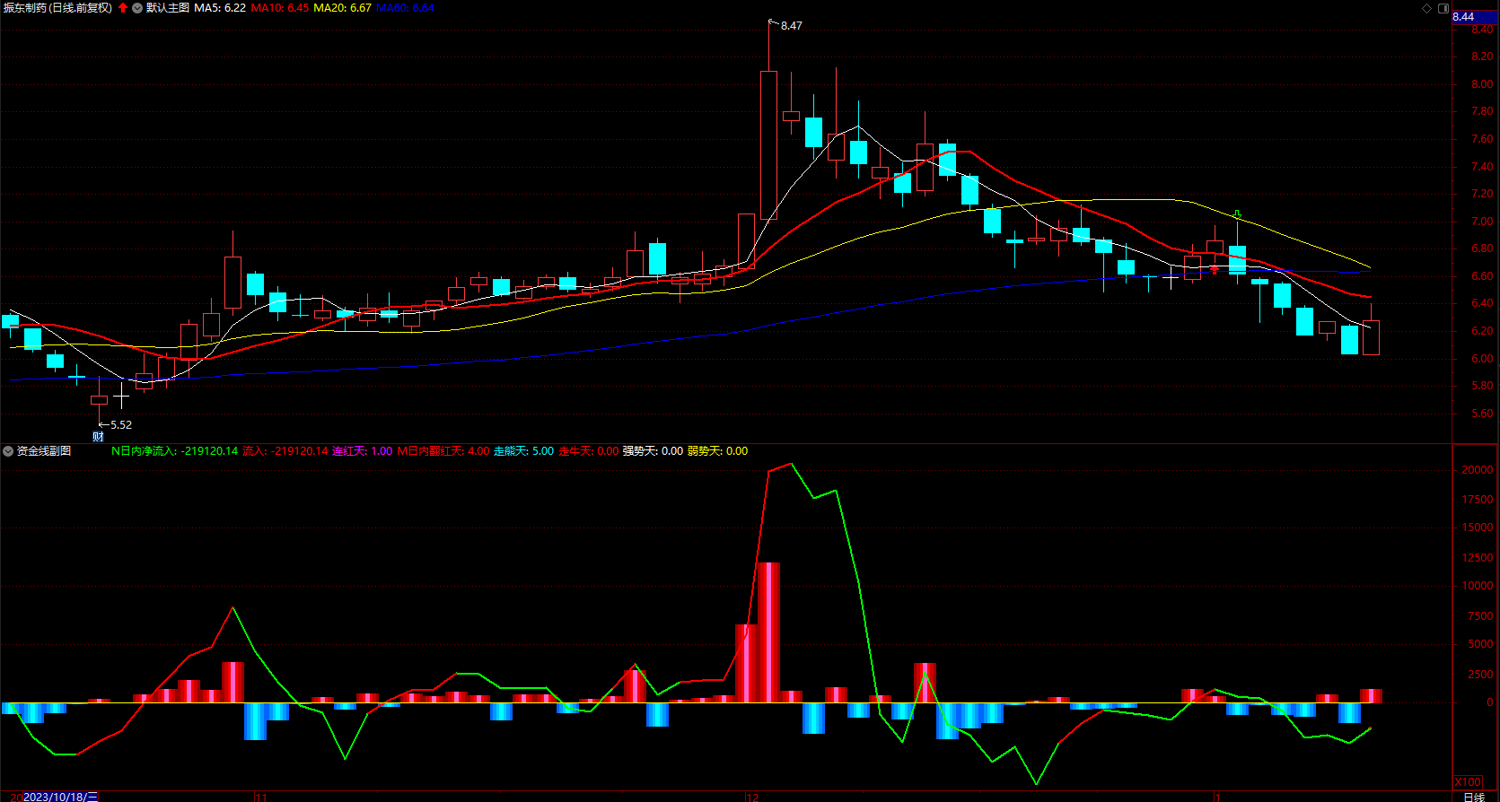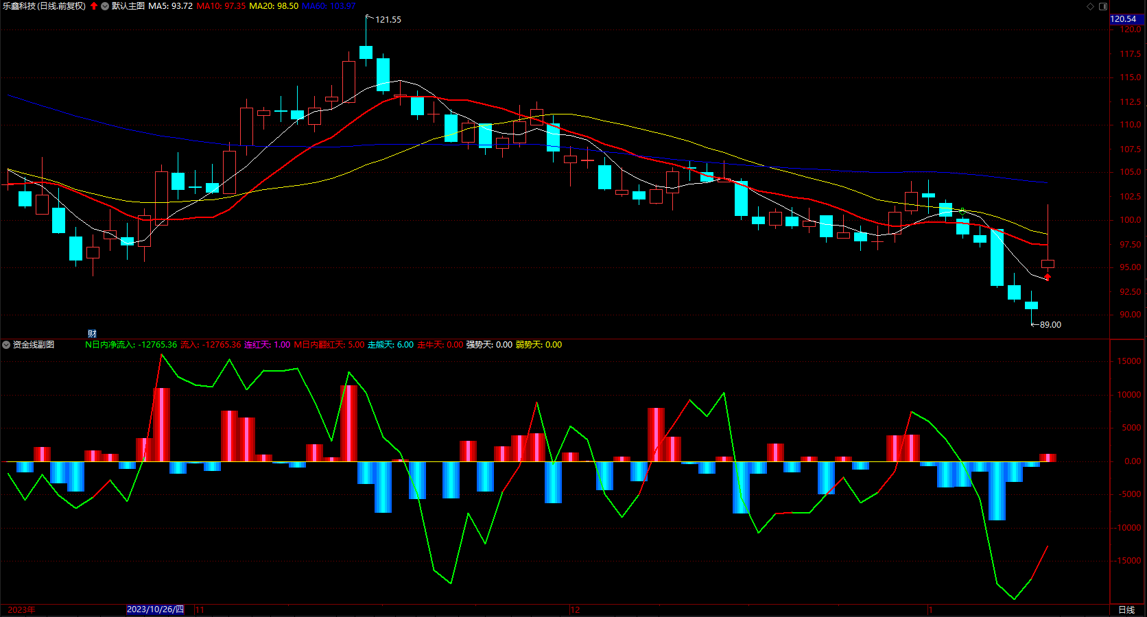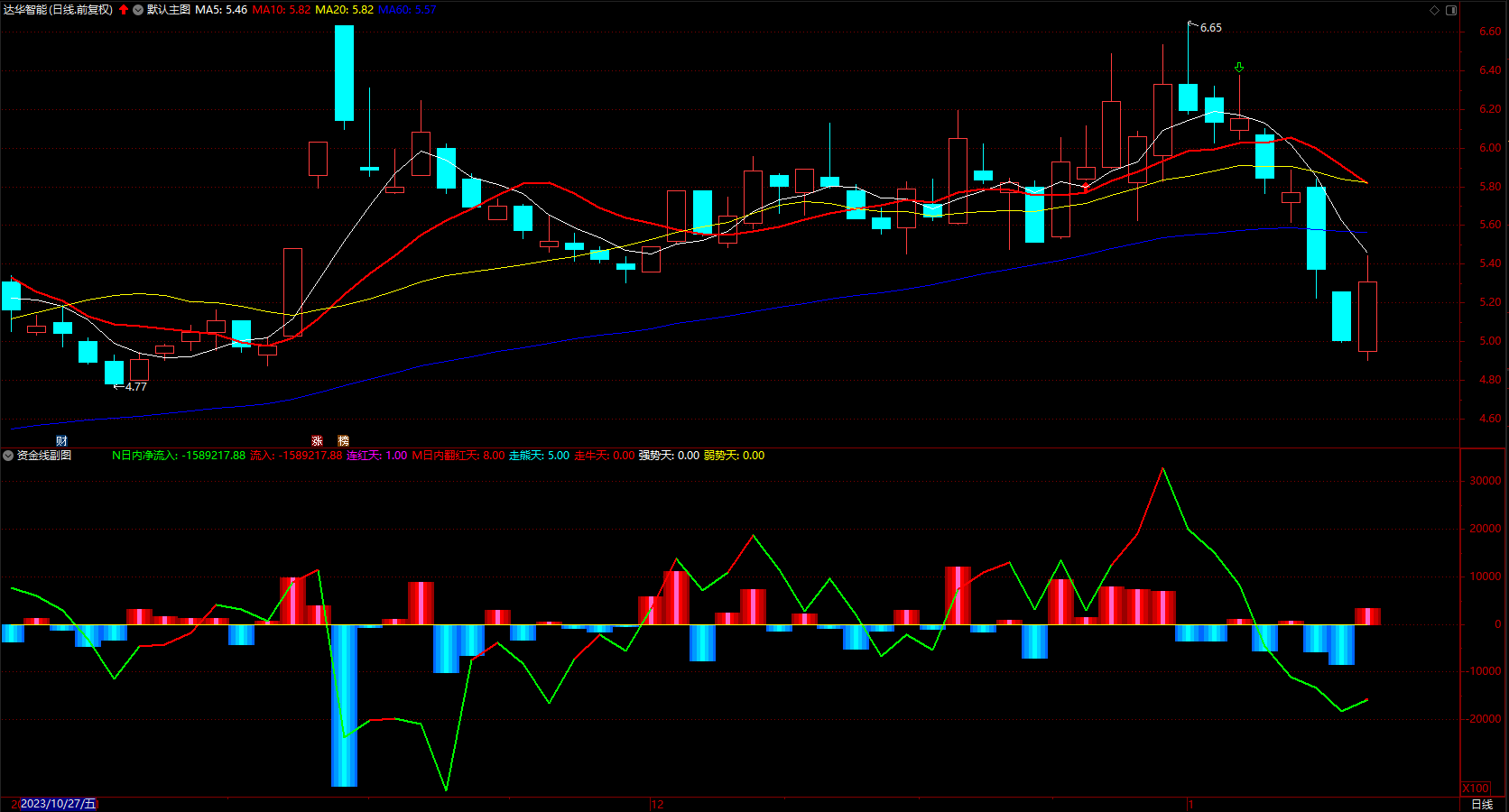 弱势天:BARSLASTCOUNT((N日内净流入<REF(N日内净流入,1))>0 AND N日内净流入<0);