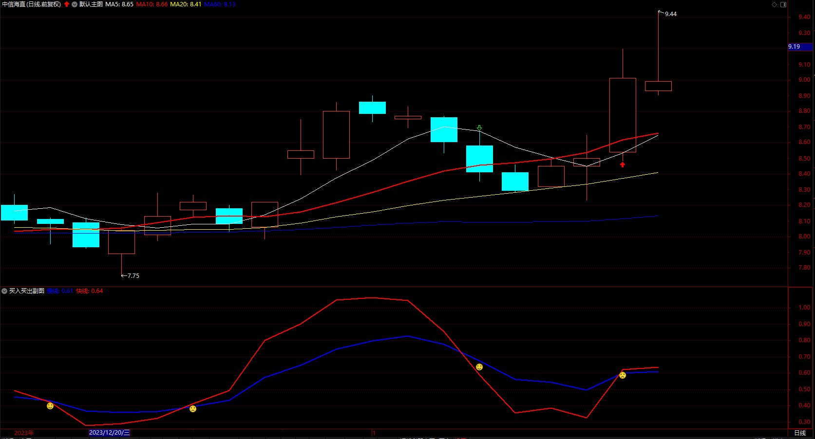 卖出:=REF(快线,1)>REF(慢线,1) AND 快线<=慢线;