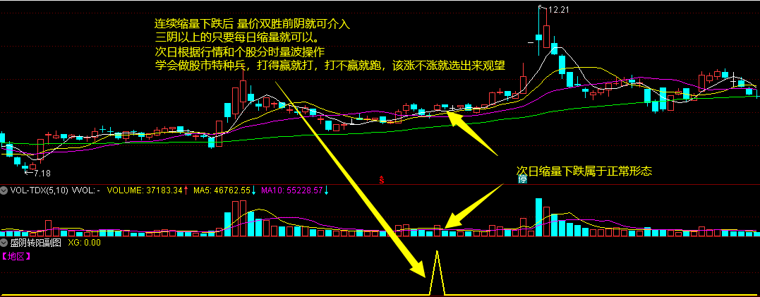 ( 盛阴转阳 寻找连续缩量下跌后量价双胜阴的票 副图 选股指标)