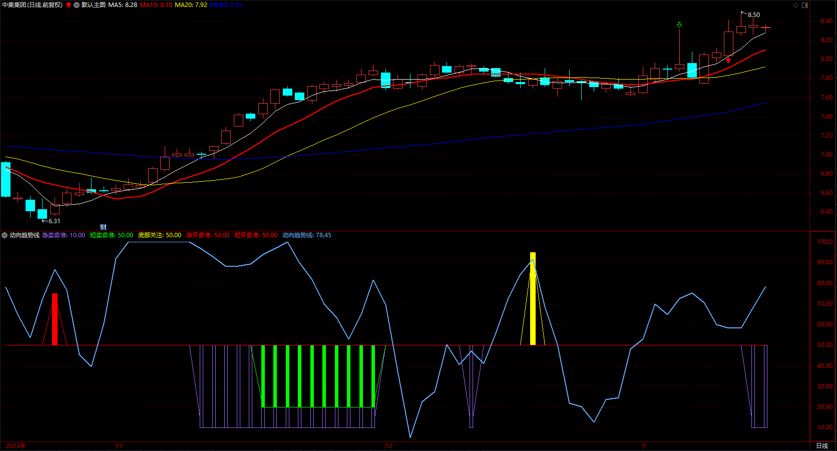 底部奇准 适合短线操作者 通达信买进动向趋势线 指标公式 副图 无未来 源码