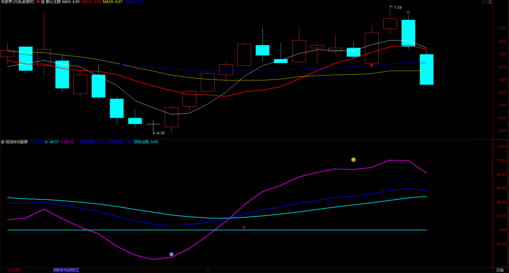 短期底部涨停预警 通达信笑哭脸趋势通道 指标公式 副图 无未来 源码