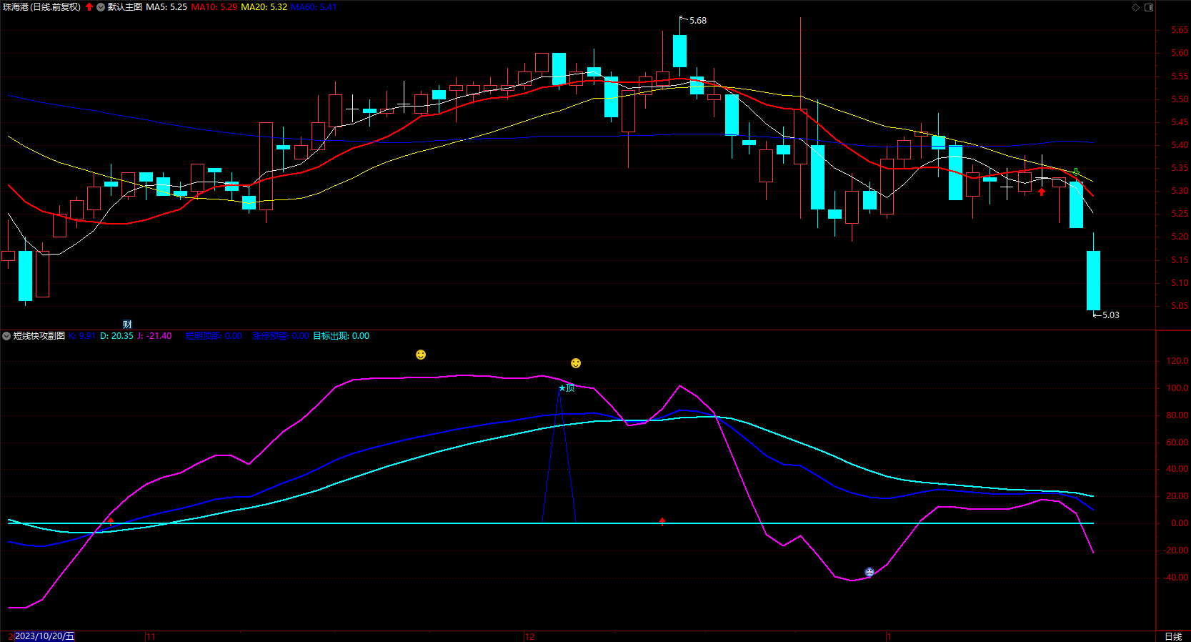 (短期底部涨停预警 通达信笑哭脸趋势通道 指标公式 副图 无未来 源码 )