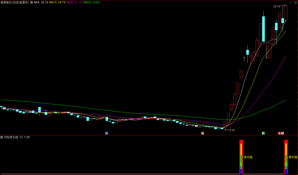 【双枪穿天炮】通达信双枪穿天炮副图选股指标,回马枪指南针!源码分享