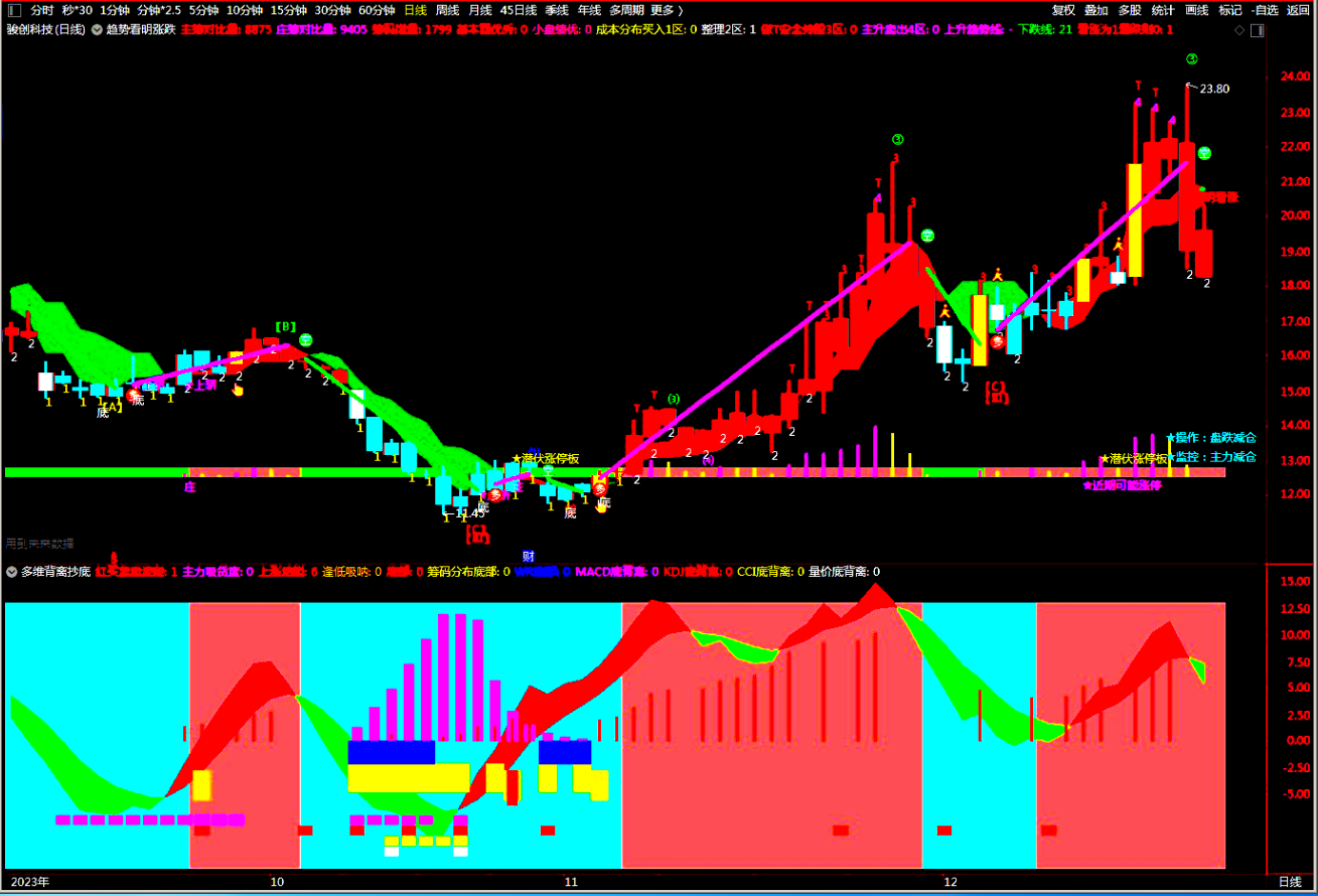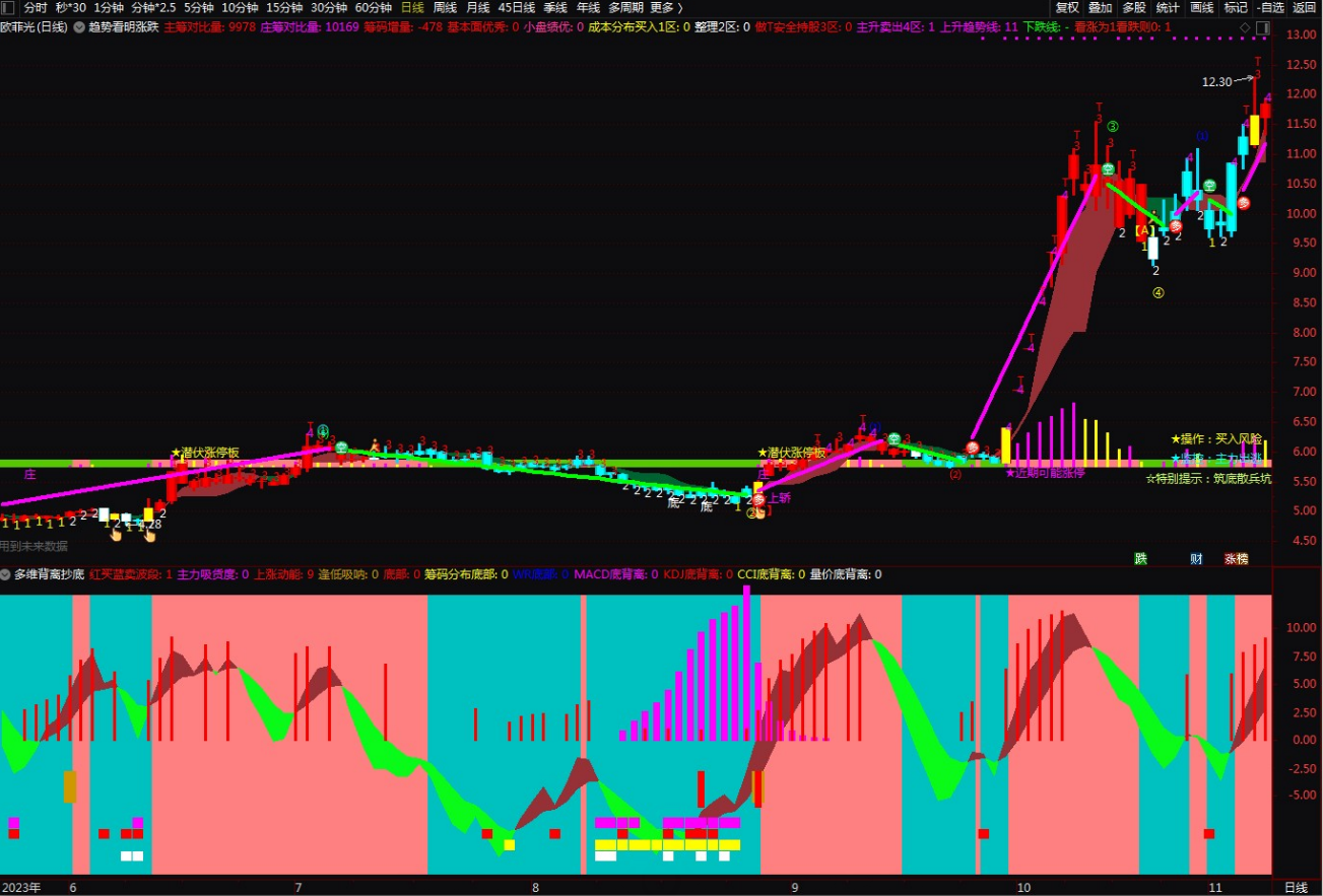 【新版双紫擒龙】副图选股指标强势起爆+双紫擒龙+动能二号+共振追涨 独创三紫一红选股