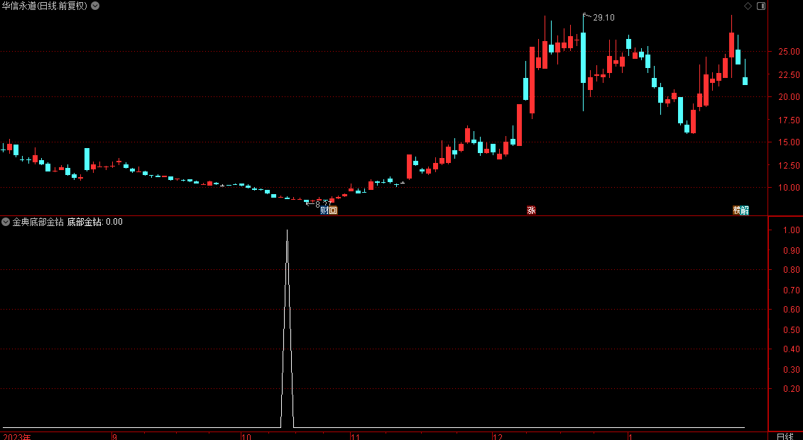 (金典通达信底部金钻选股副图,祝股市长虹!)