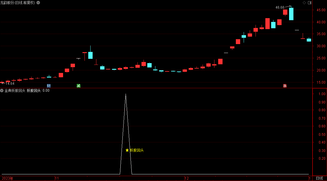 (金典通达信金典妖股回头选股副图指标!!!)