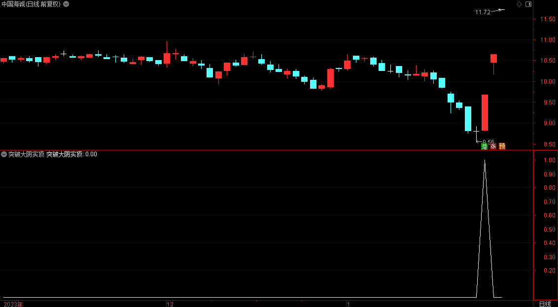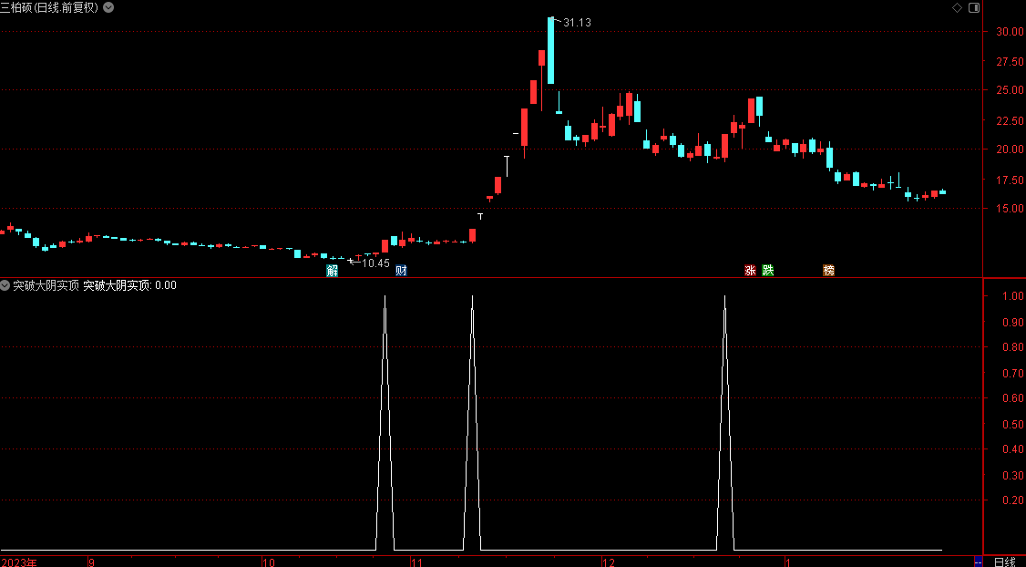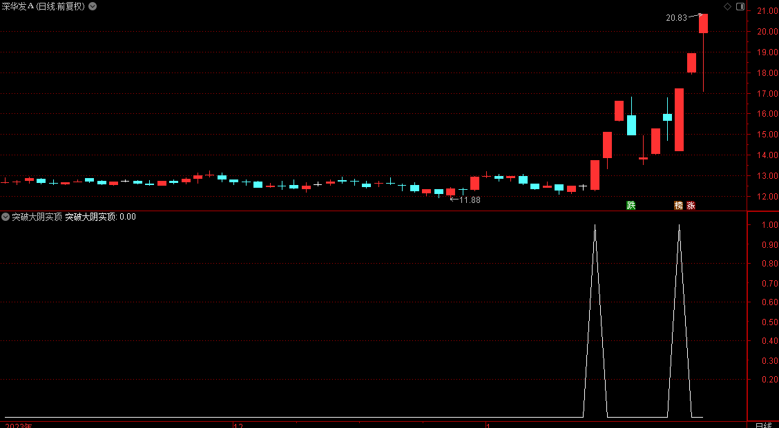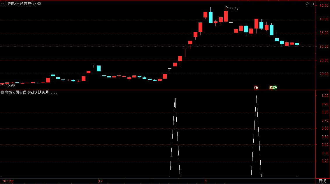 (金典突破大阴实顶选股副图,无未来,祝股市长虹!!!)