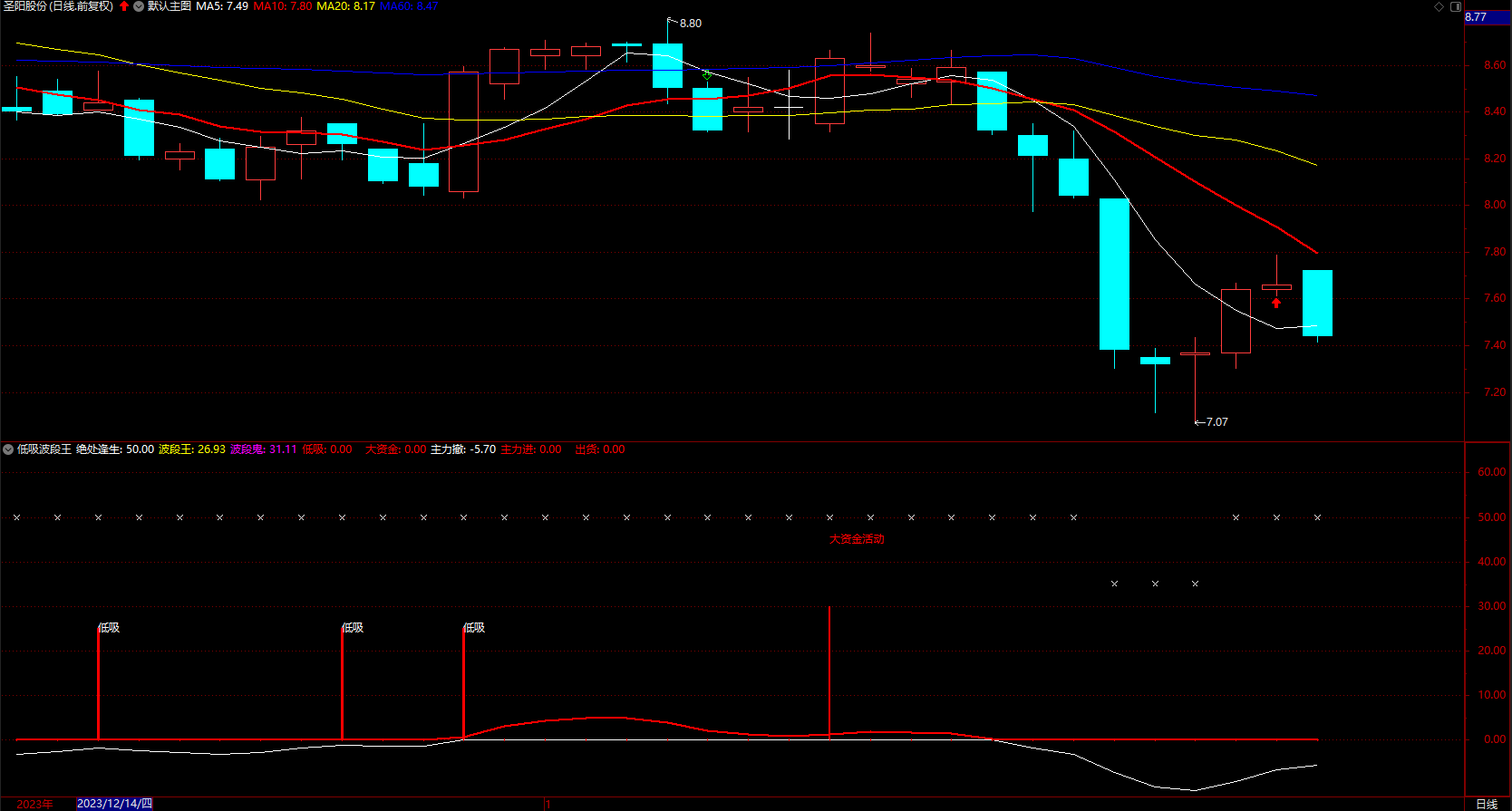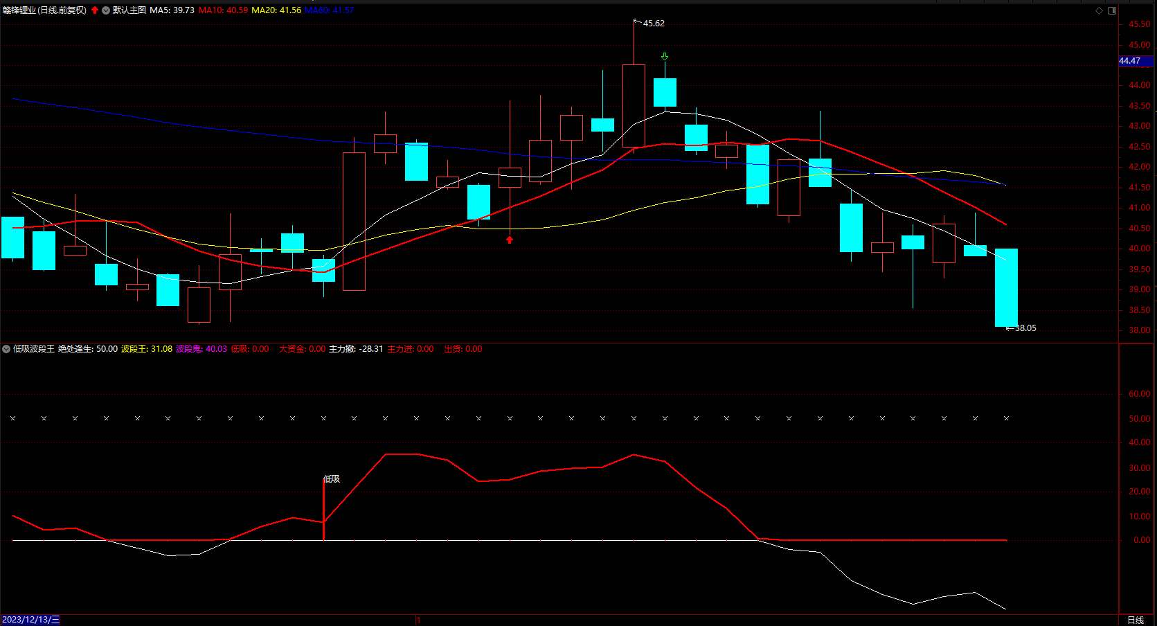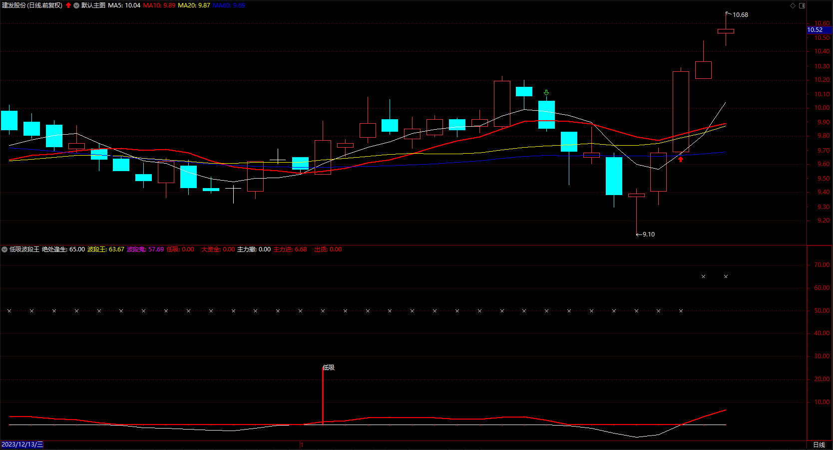 DRAWTEXT(CROSS(波段王,波段鬼) AND 波段王<50,25,'低吸'),LINETHICK1,COLORWHITE;