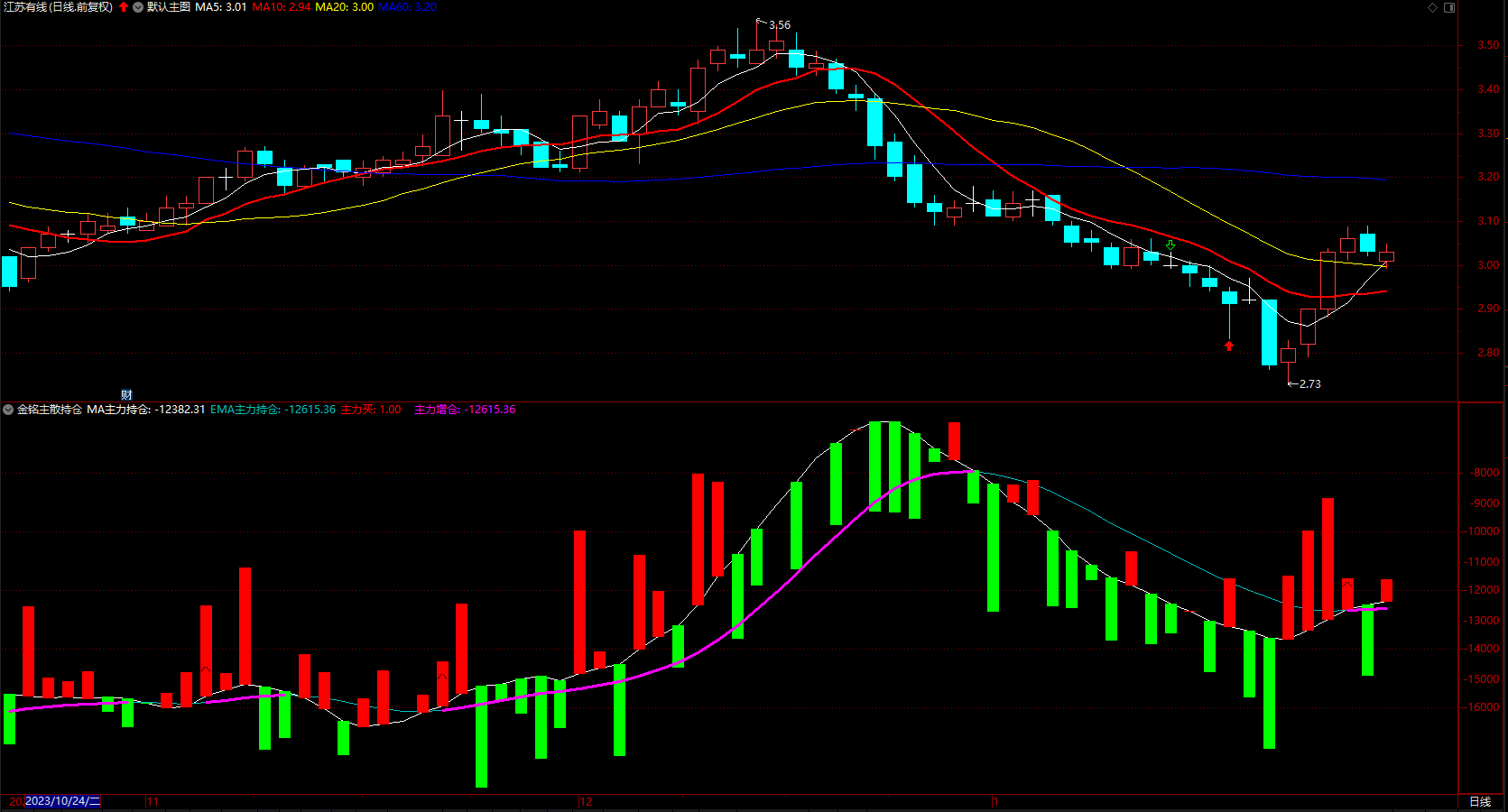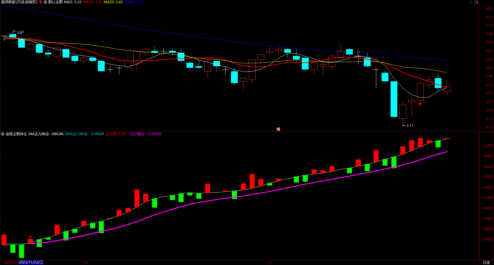 EMA主力持仓:SMA(MA主力持仓,6,1),COLORLIBLUE,LINETHICK1;