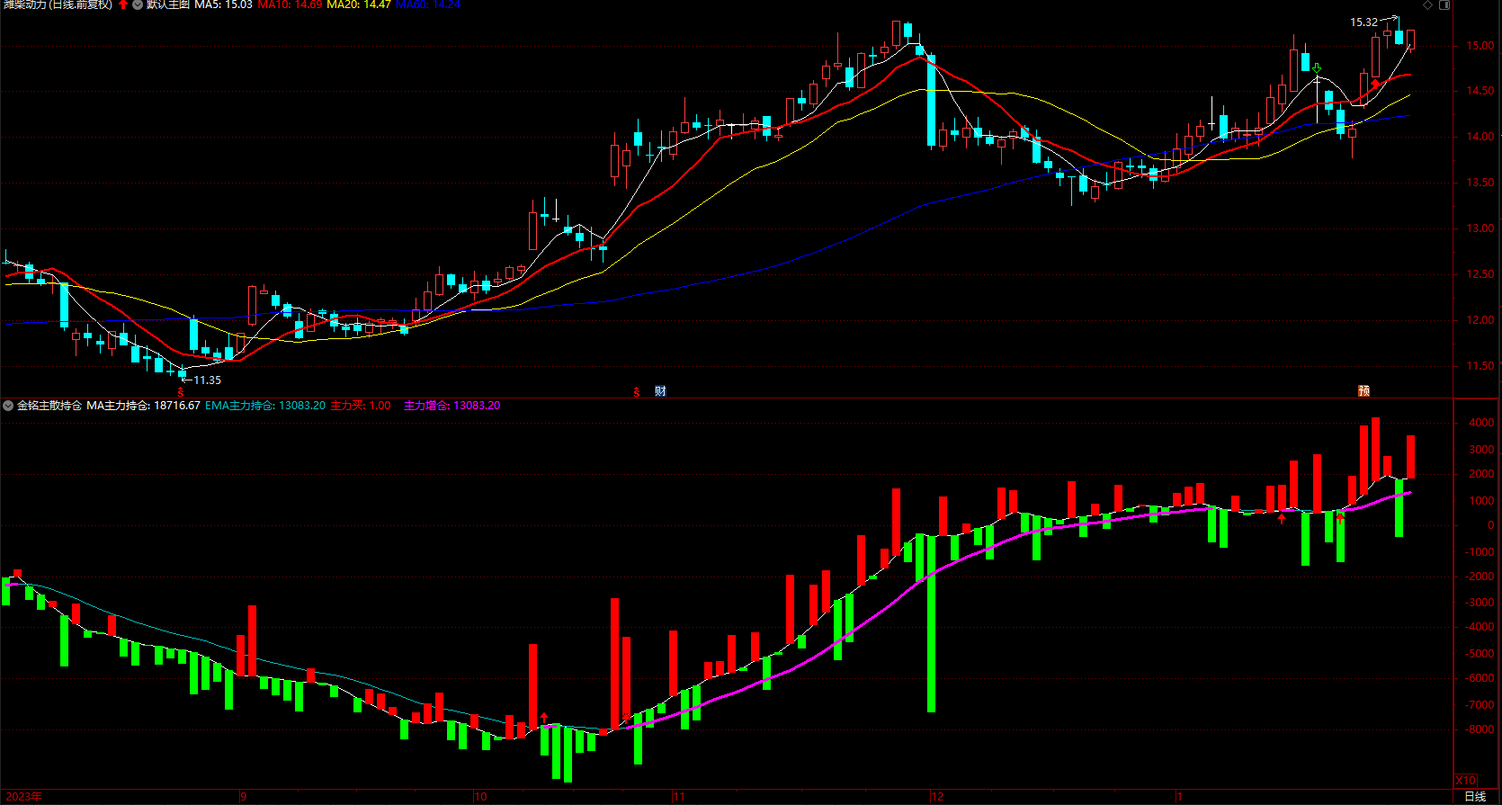 MA主力持仓:SMA(主力持仓,15,1),COLORWHITE,LINETHICK1;
