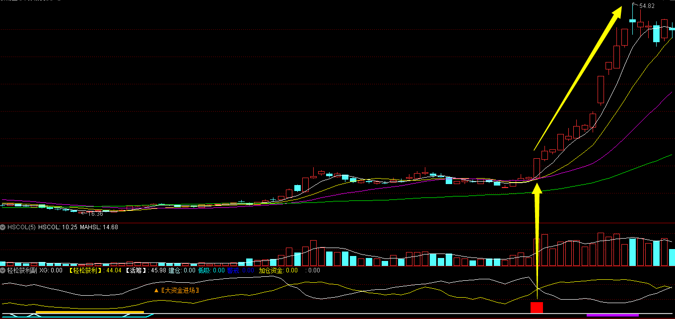 主力自己各种操盘阶段,可以清楚地分辨出来,帮助我们及时发现主升浪,跟着主力吃肉!含选股公式