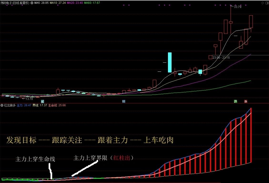 【红出做多】通达信红出做多副图指标,跟庄指标,源码分享