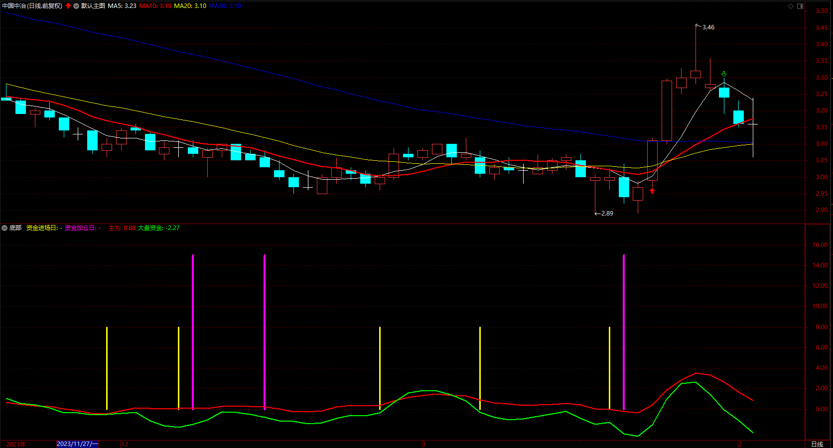(资金加仓减仓一清二楚 通达信粉色柱子提示买入点 指标公式 副图 无未来 源码 )