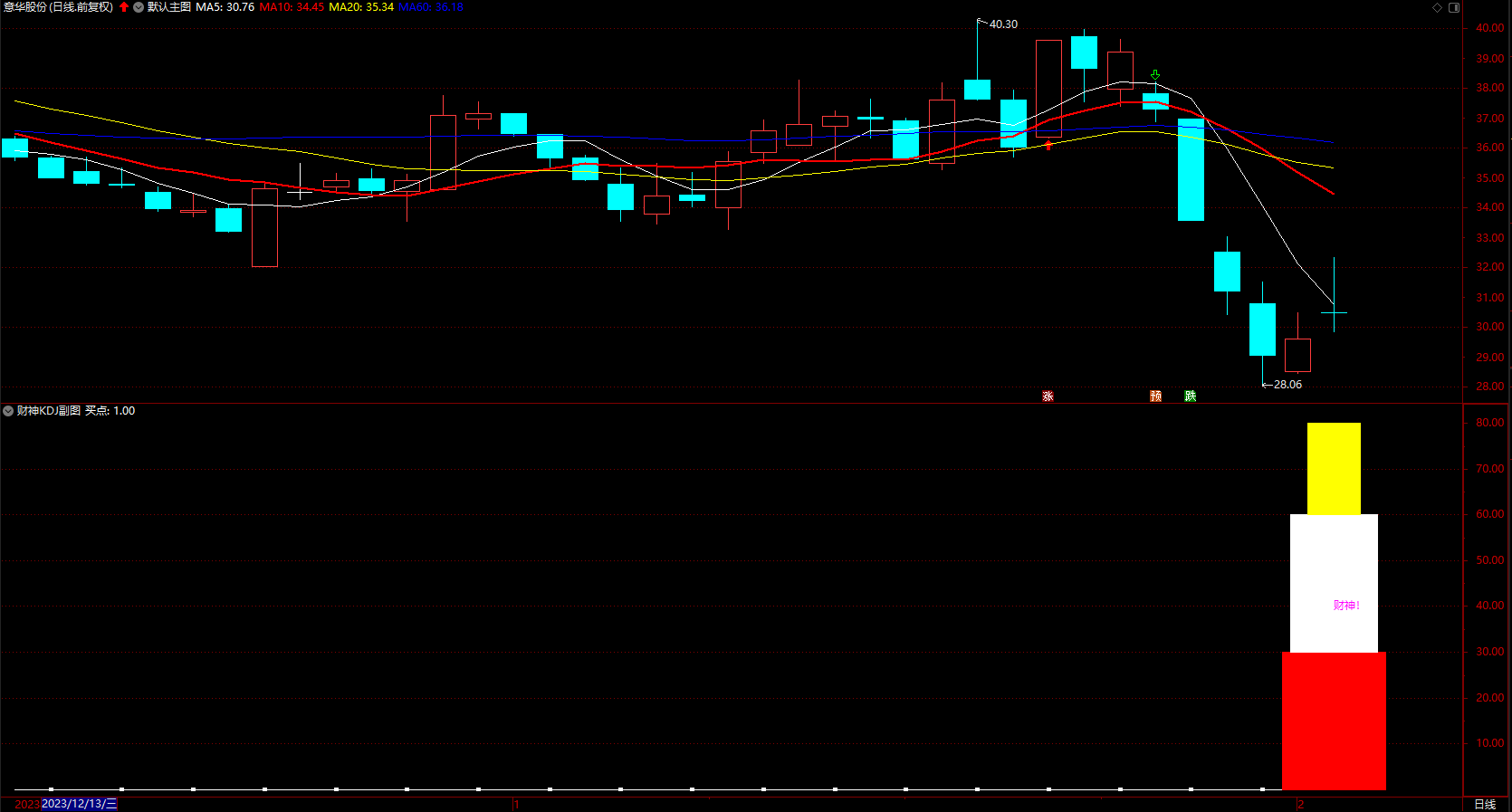 (财神KDJ副图 通达信彩色柱买进点 指标公式 源码 )