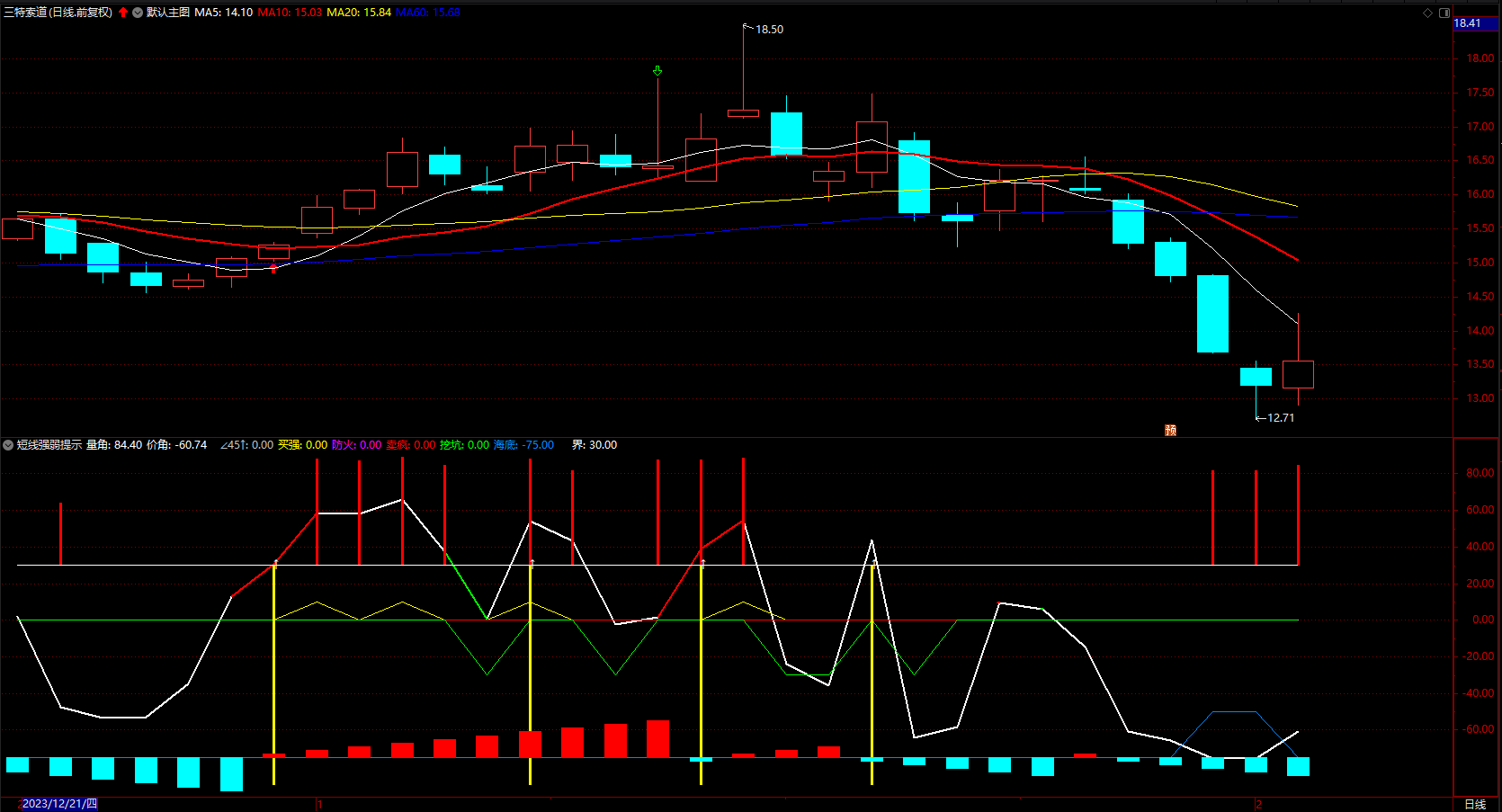 防火:IF(MA5角度>70 AND MV5角度>80,20,0),COLORFF00FF;