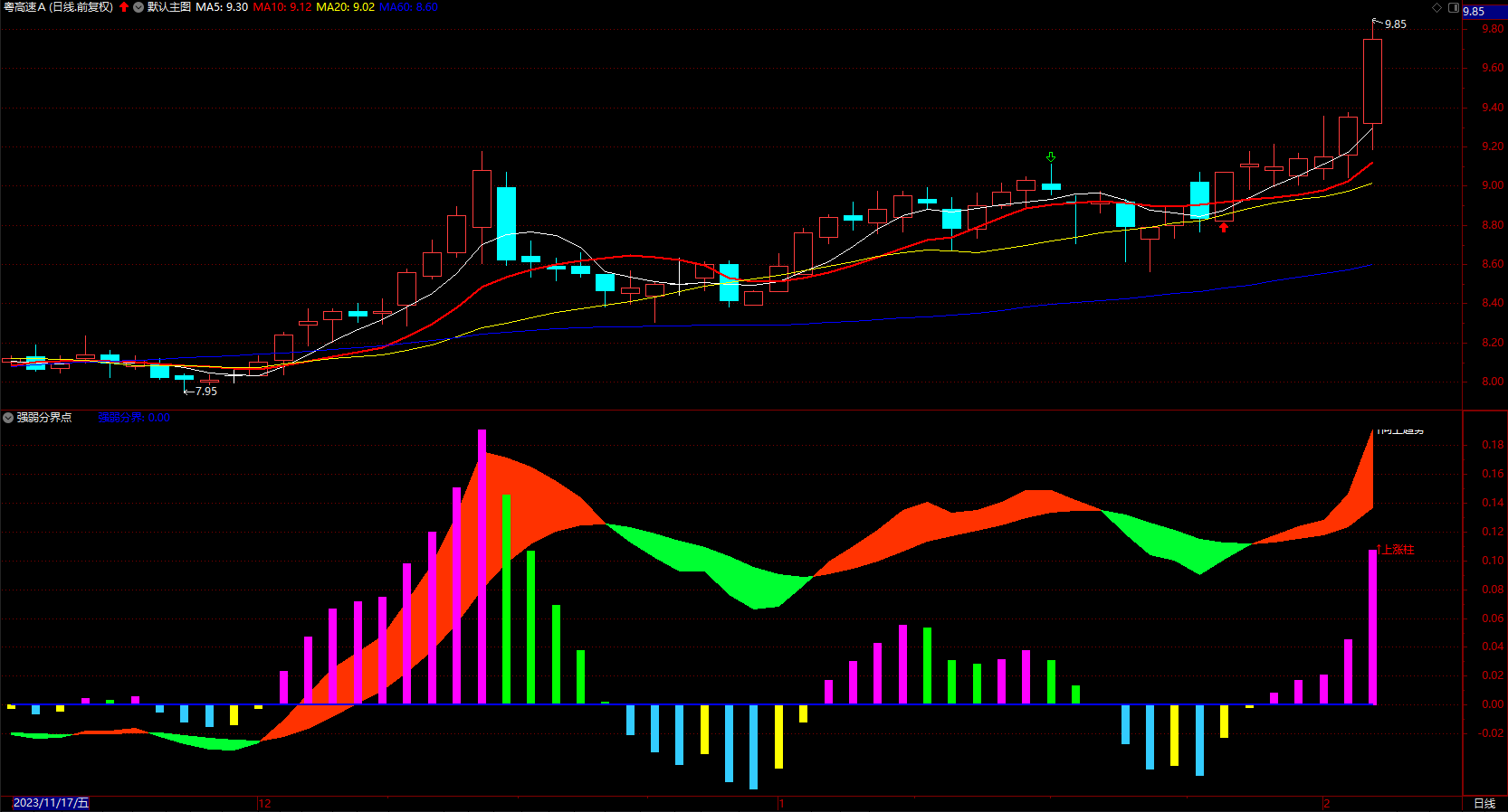 (MACD强弱分界指标公式 通达信量柱判断涨跌提示 副图 无未来 源码 )
