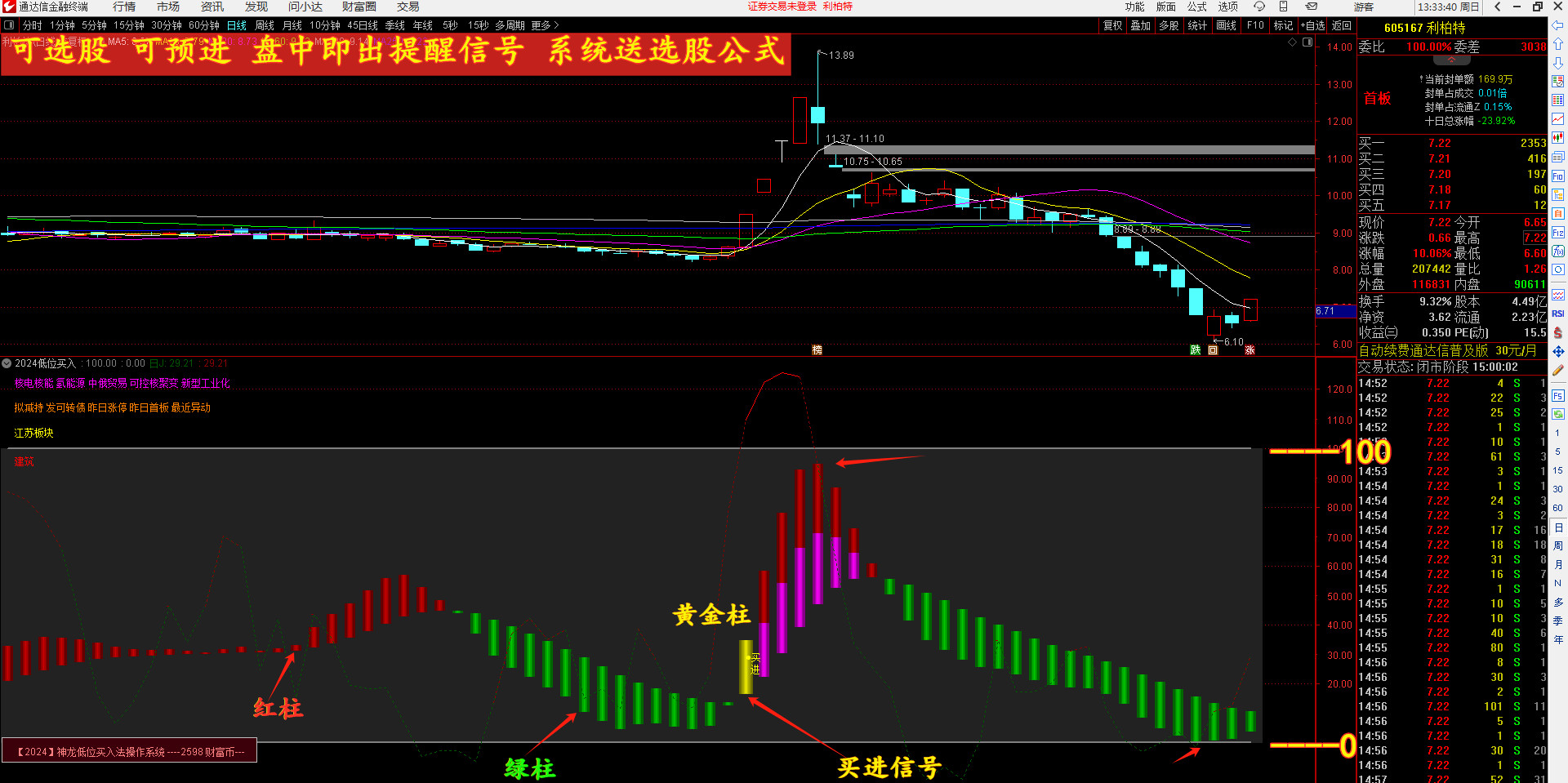 (【2024】低位买入新升级 精准 安全成功率高 超级短线 尾盘买进 今买明卖均可)
