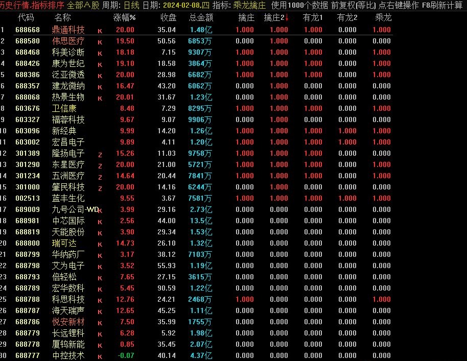 (【乘龙擒庄】通达信乘龙擒庄副图指标,可排序源码分享)