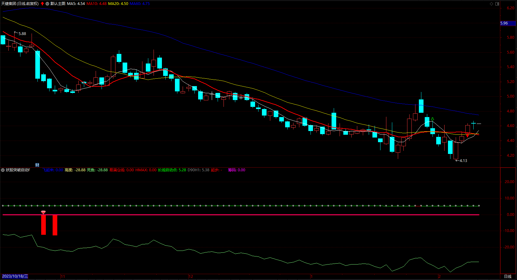 (简单易懂的交易指标 趋势突破擒牛 通达信启动点 副图 指标公式 源码 )
