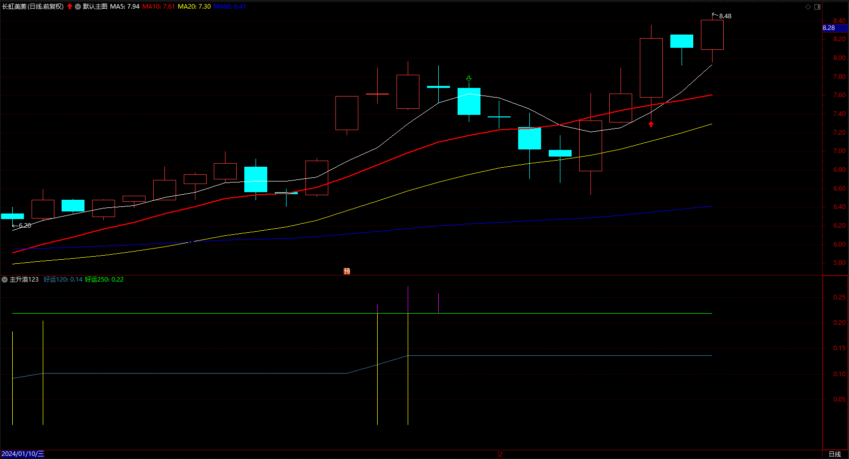 通达信【趋势回马枪战法策略】选股器【在强势趋势中,精准捕捉回踩启动点,1选+1主图+2副图】