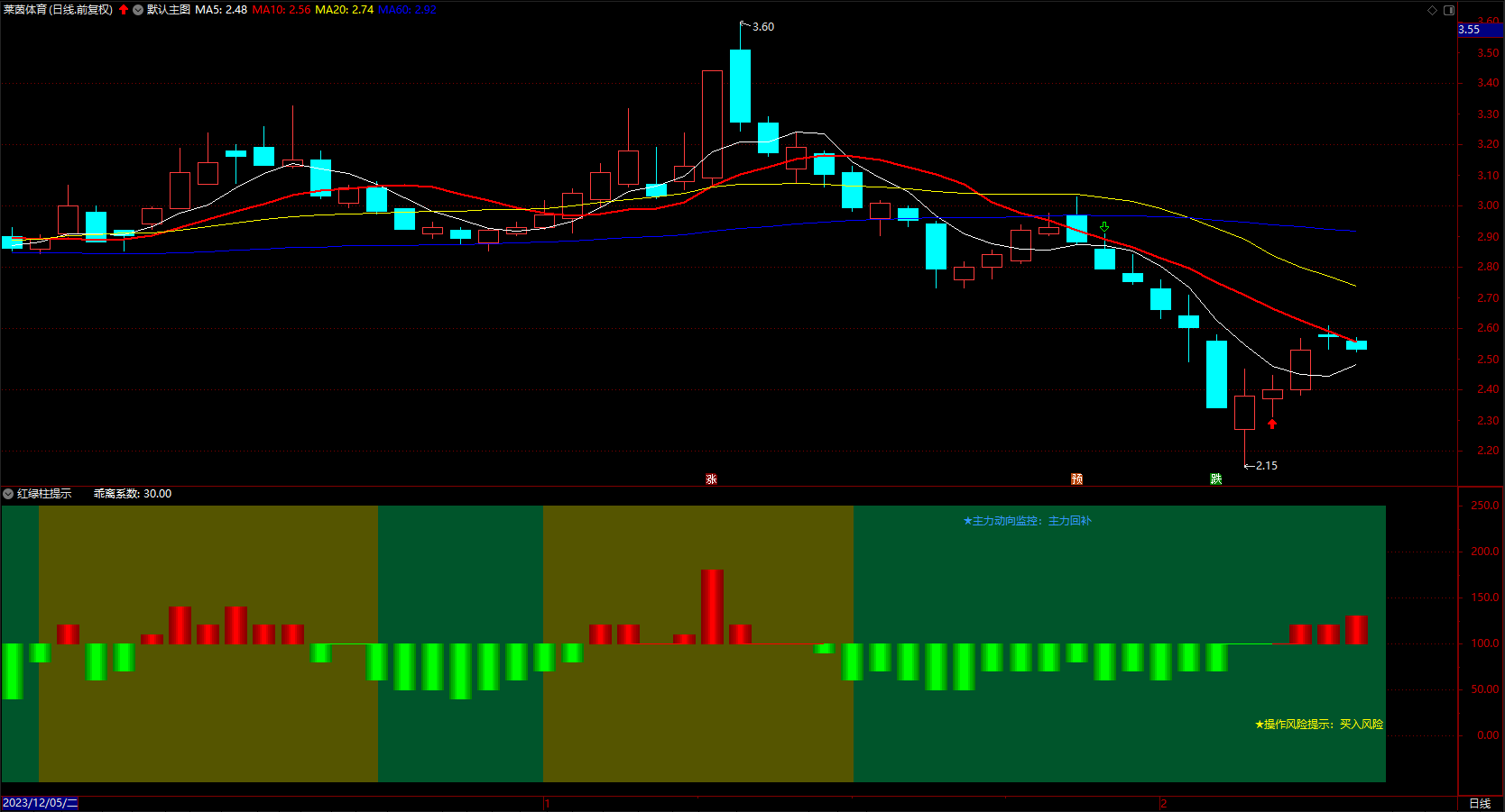 DRAWTEXT_FIX(T6,0.86,TS6,0,'★操作风险提示:买入风险'),COLORYELLOW;