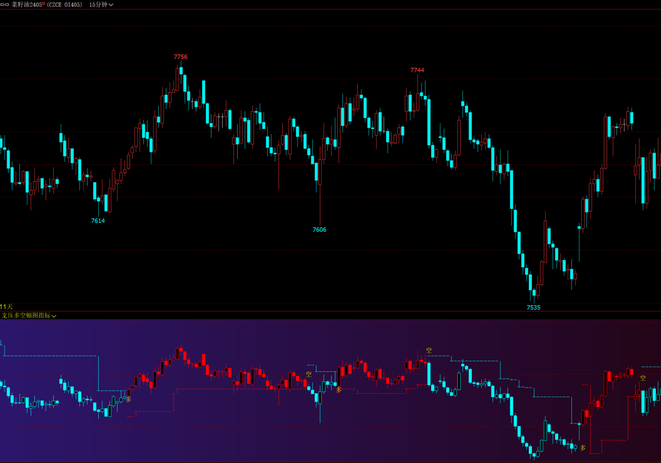(文华财经支撑压力变色多空买卖信号幅图指标)