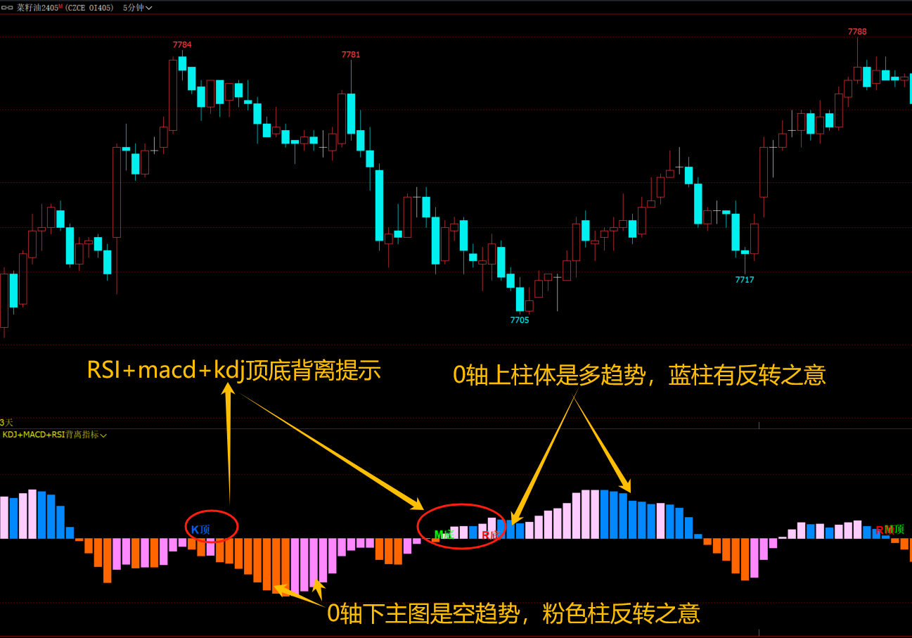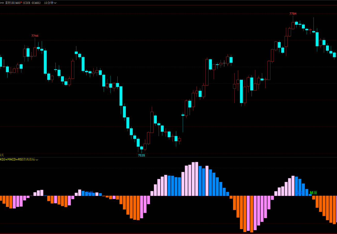 (文华财经macd+kdj+rsi顶底背离多空指标系统)