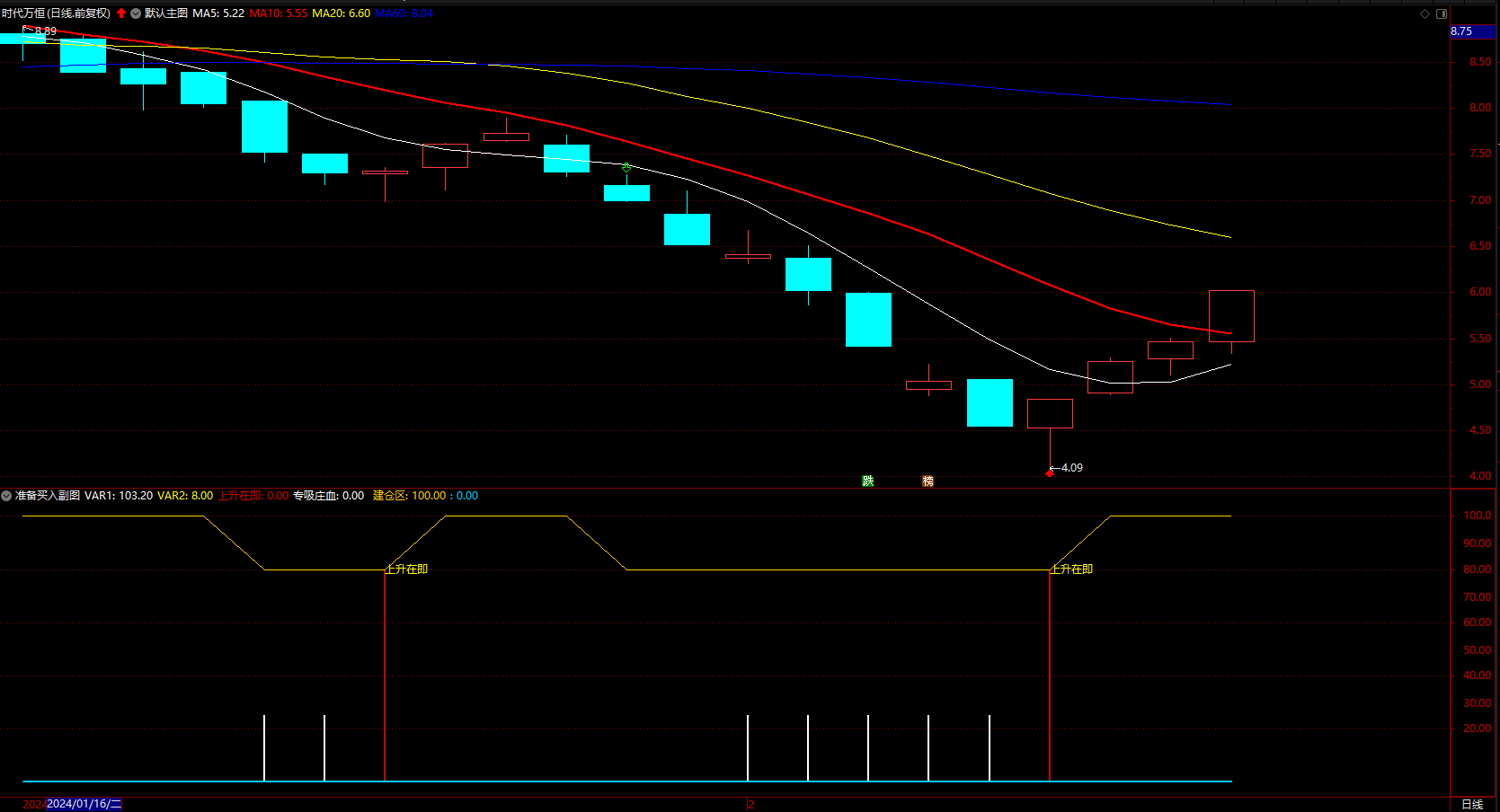 DRAWTEXT(CROSS(VAR1,VAR2),80,'上升在即'),COLOR00FFFF;